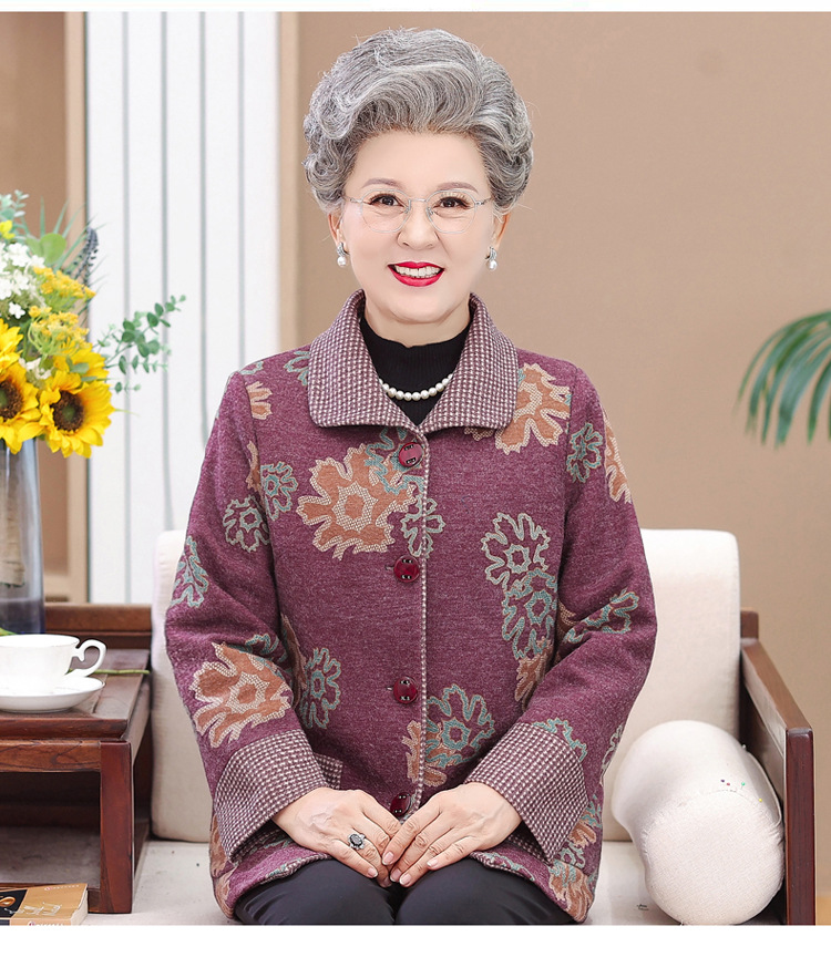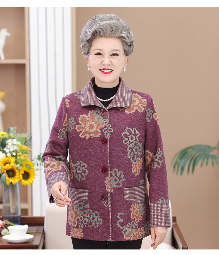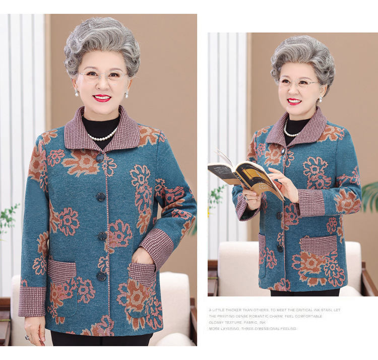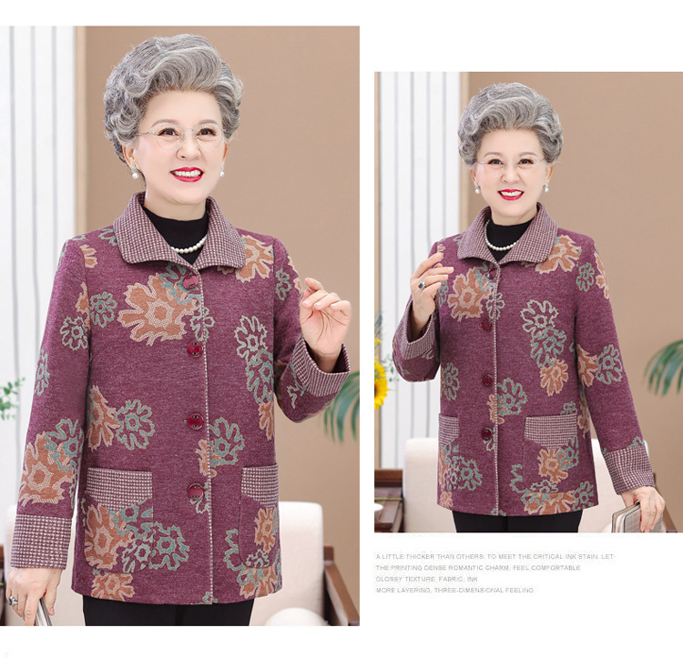 老年人春装女翻领外套60岁70老太太妈妈春秋上衣奶奶洋气老人衣服