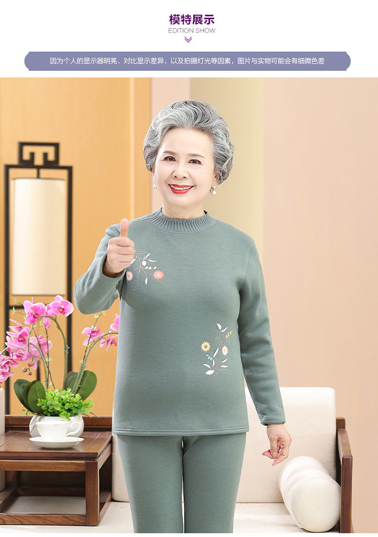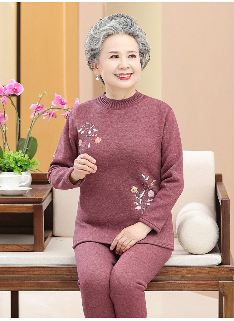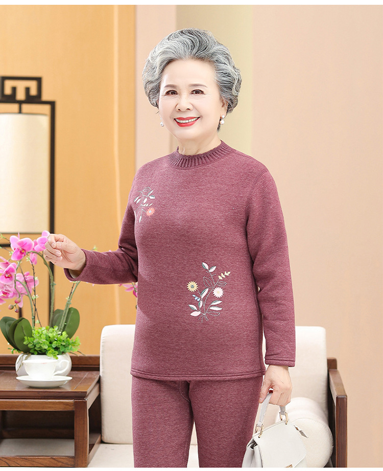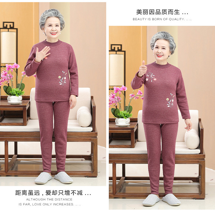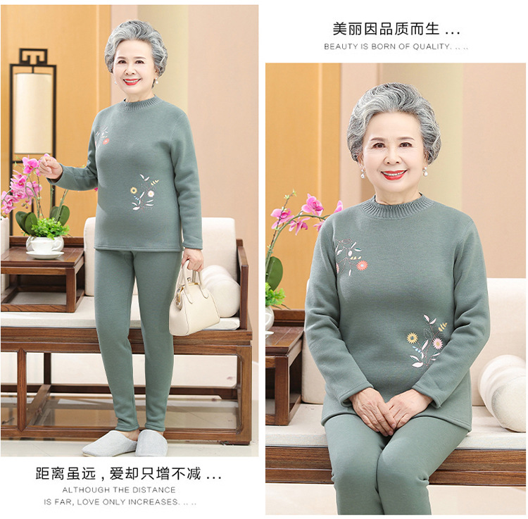 奶奶装冬装保暖内衣羊羔绒妈妈套装加绒加厚老太太打底老年人女装
