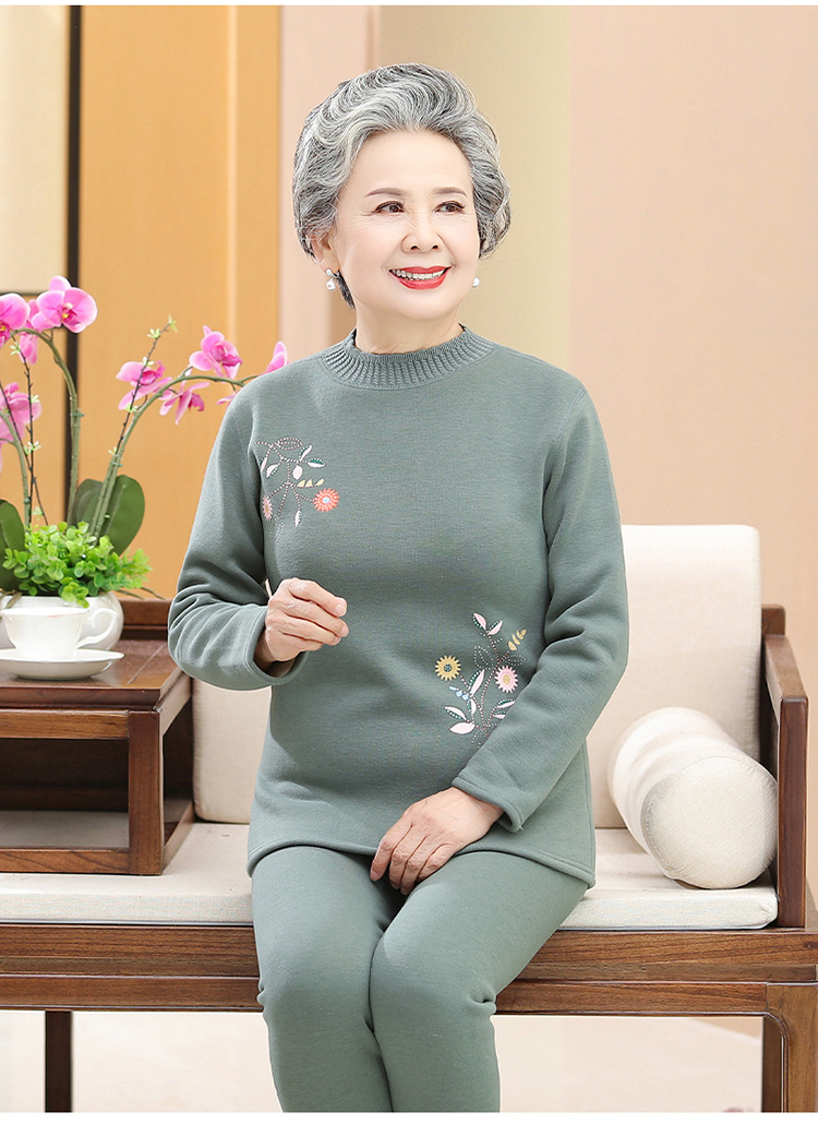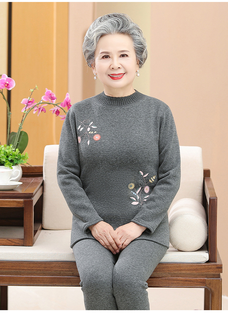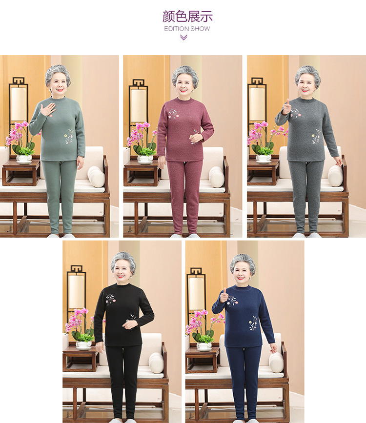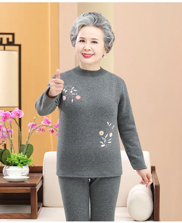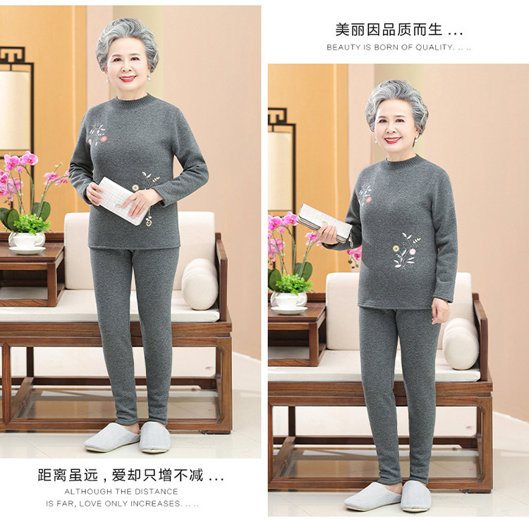 奶奶装冬装保暖内衣羊羔绒妈妈套装加绒加厚老太太打底老年人女装