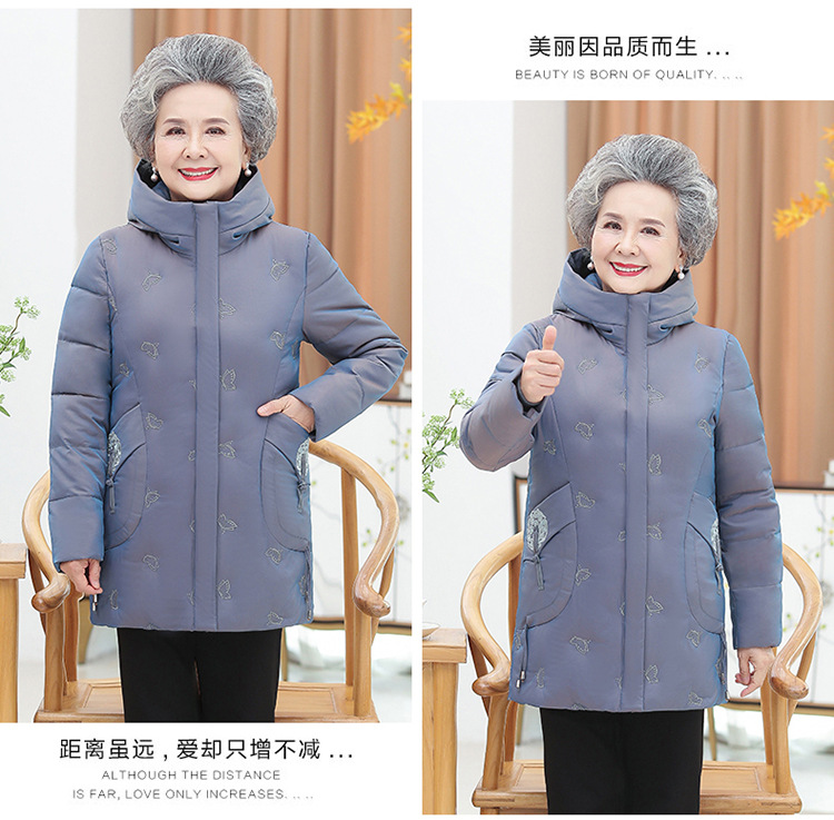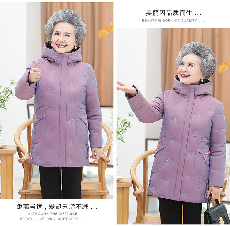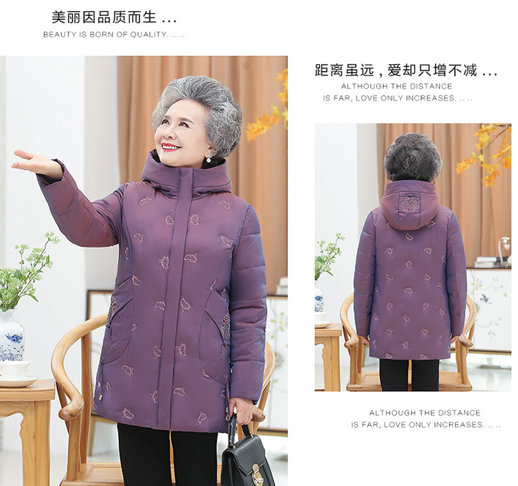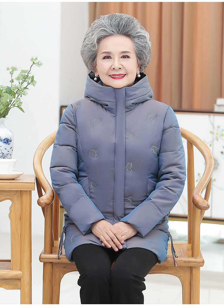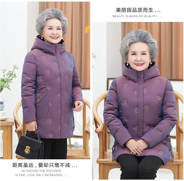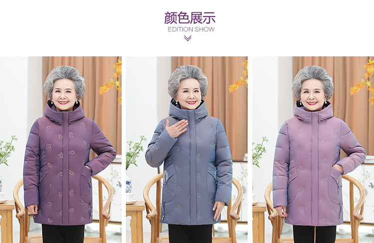 中老年人中长款洋气棉衣女奶奶连帽棉袄老太太秋冬装保暖外套妈妈