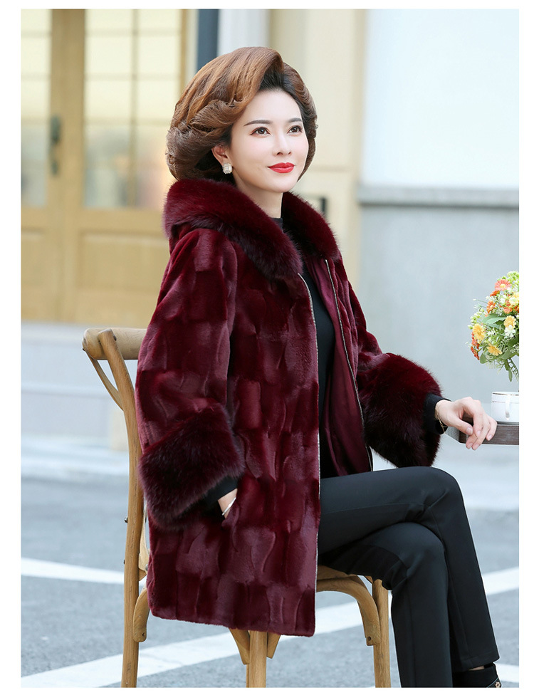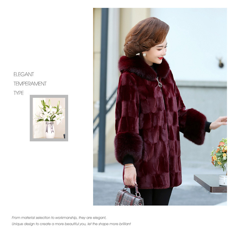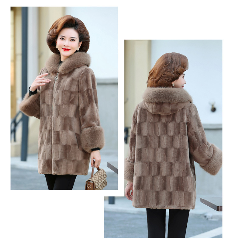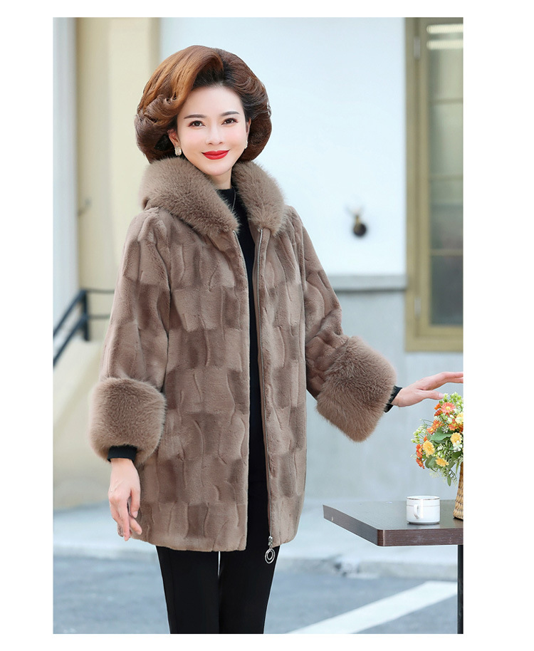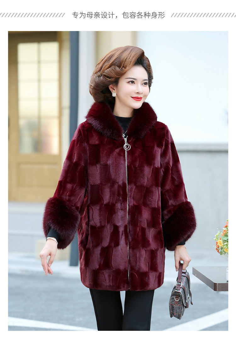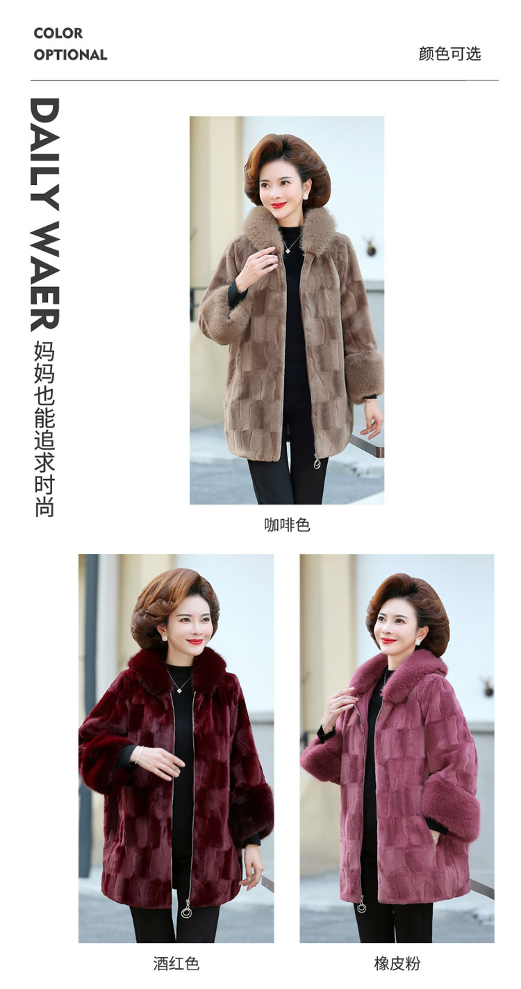 妈妈装冬季新款仿皮草外套50岁中老年女装中长款加棉加厚貂绒大衣