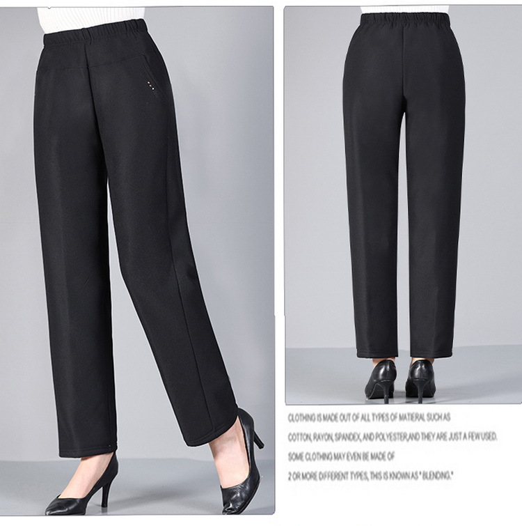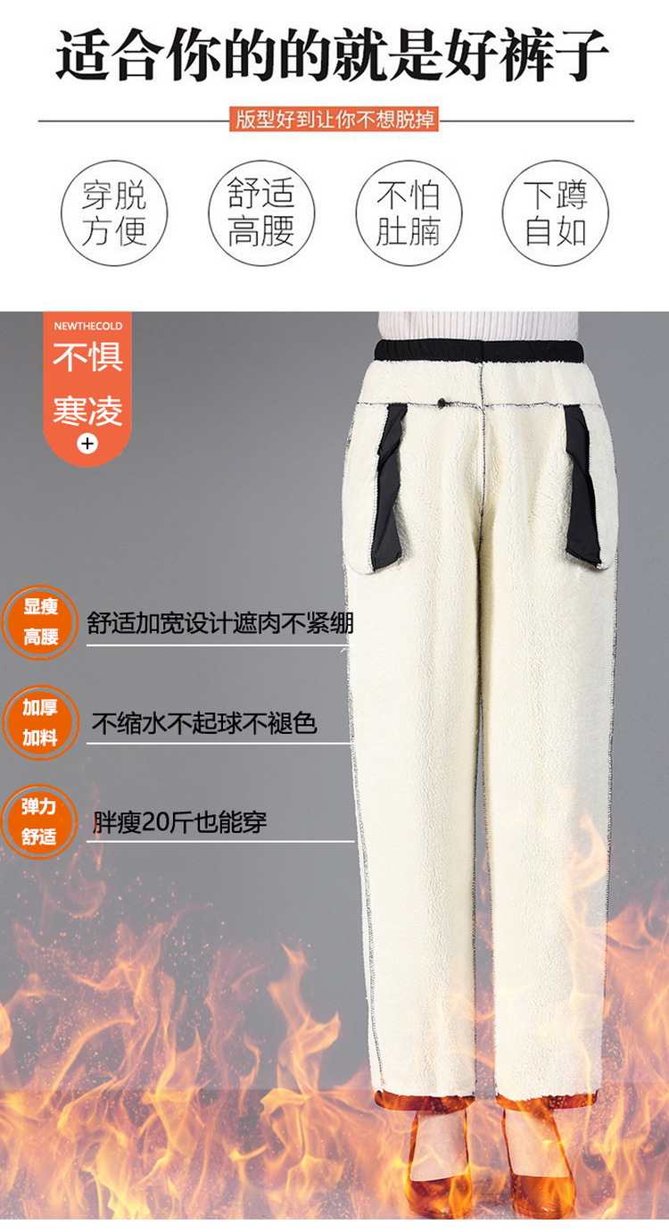 中老年女加绒加厚裤子妈妈装宽松直筒保暖裤老太太高腰羊羔绒棉裤
