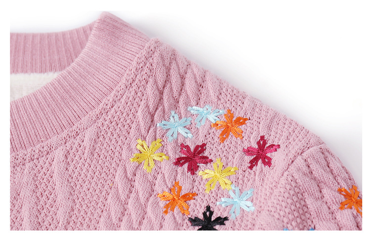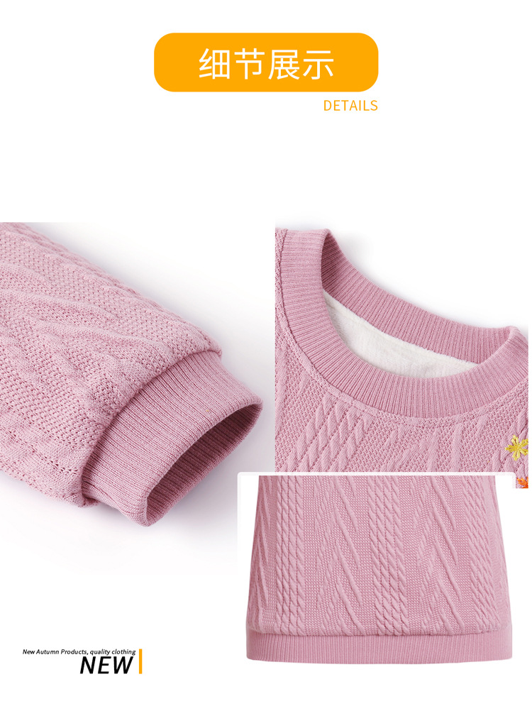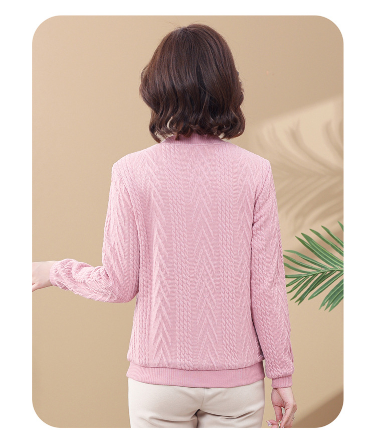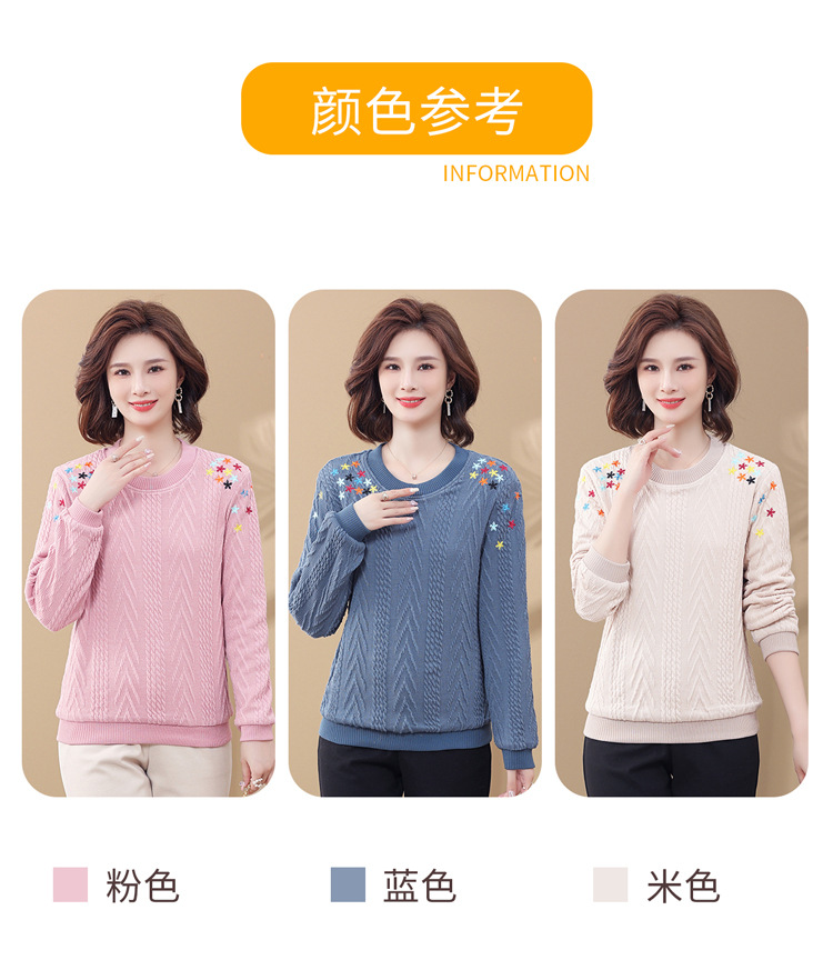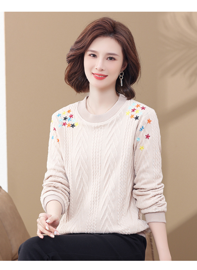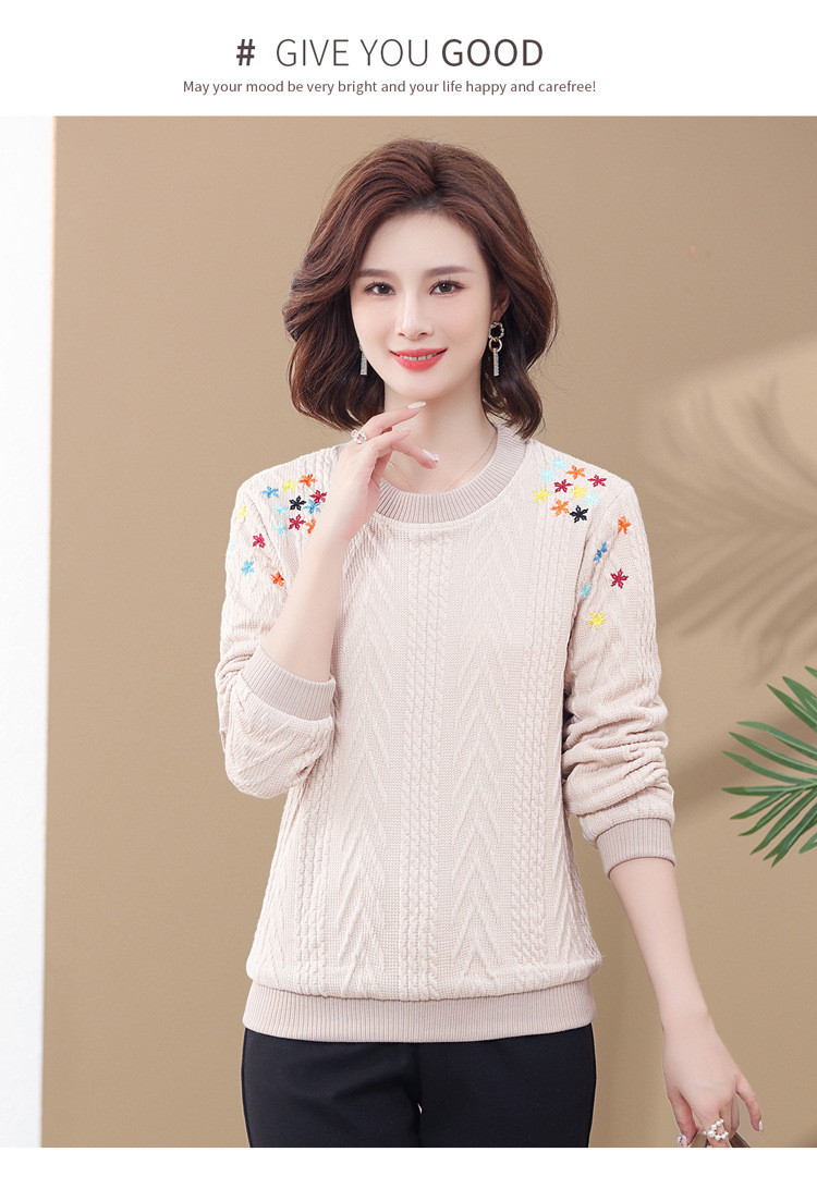 妈妈装加绒加厚针织打底衫2022新款中老年女冬装圆领套头绣花毛衣