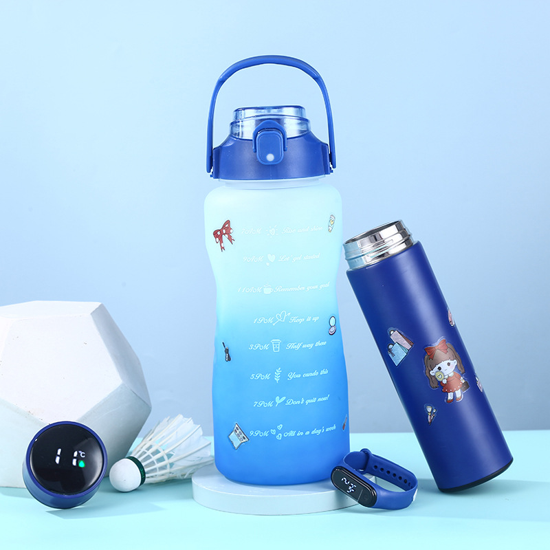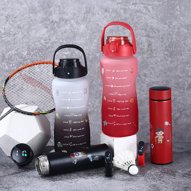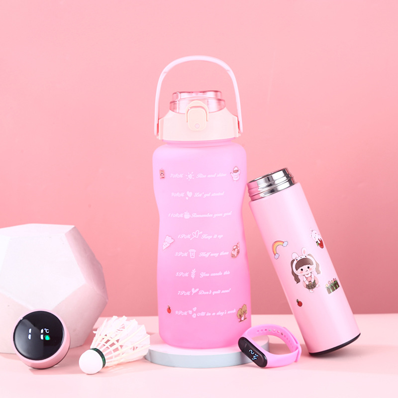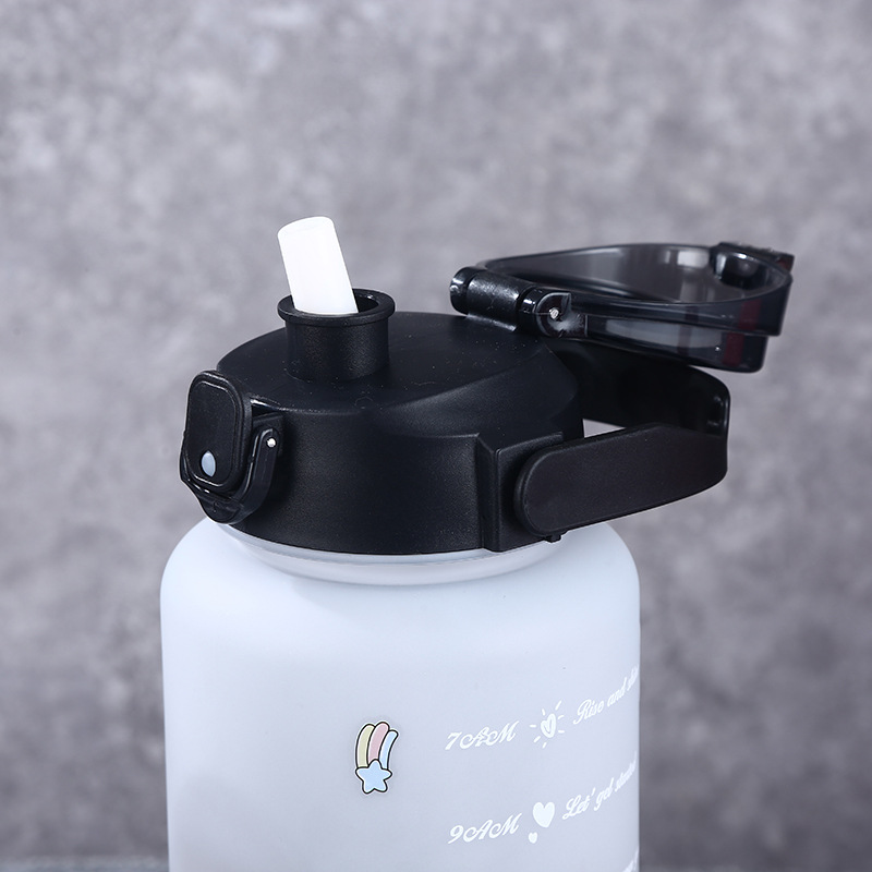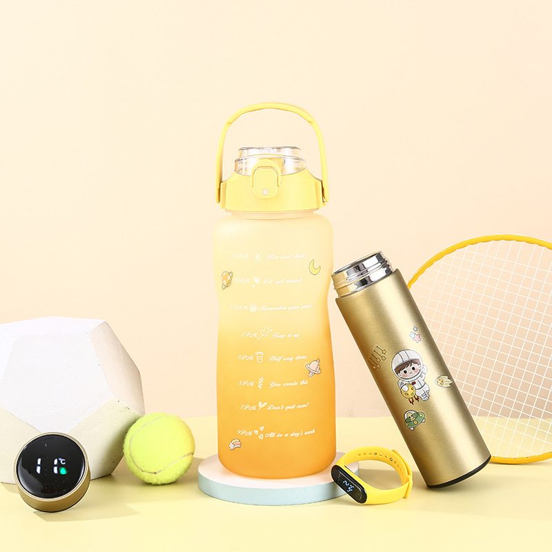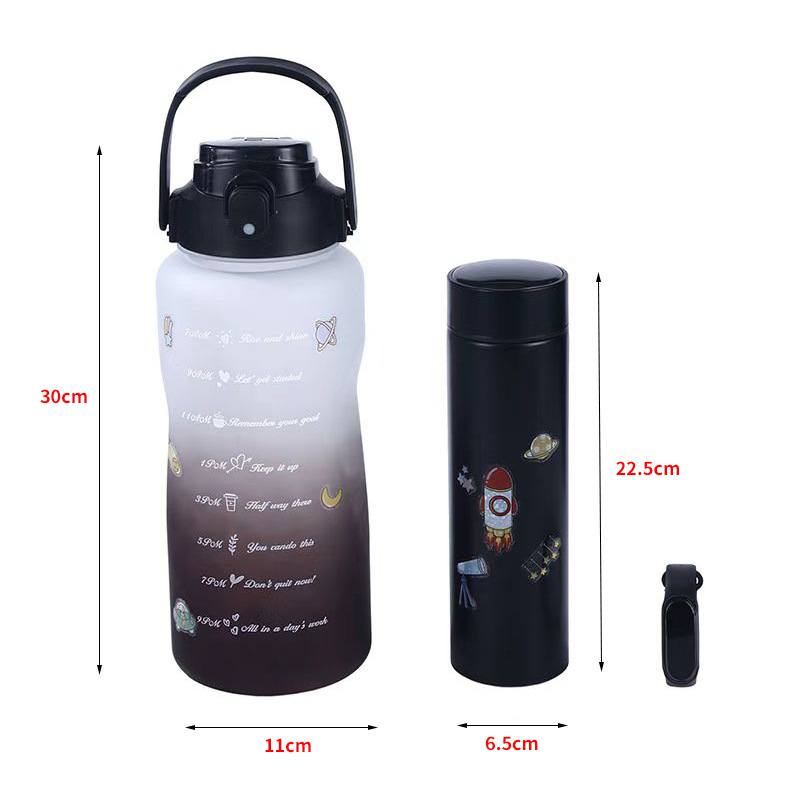 新款水杯三件套杯子 大容量2L磨砂渐变运动水壶弹跳盖塑料吸管杯