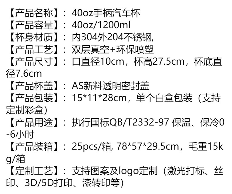 跨境热销40汽车杯二代星空创意带手柄车载保温保冷40oz冰霸杯