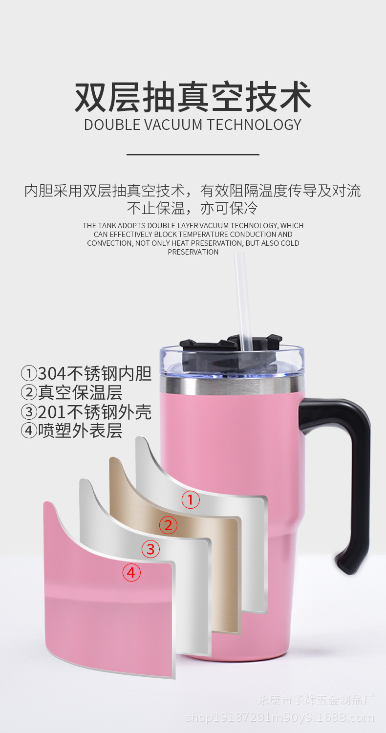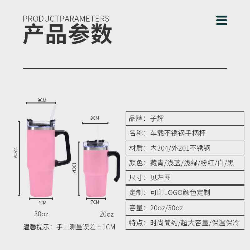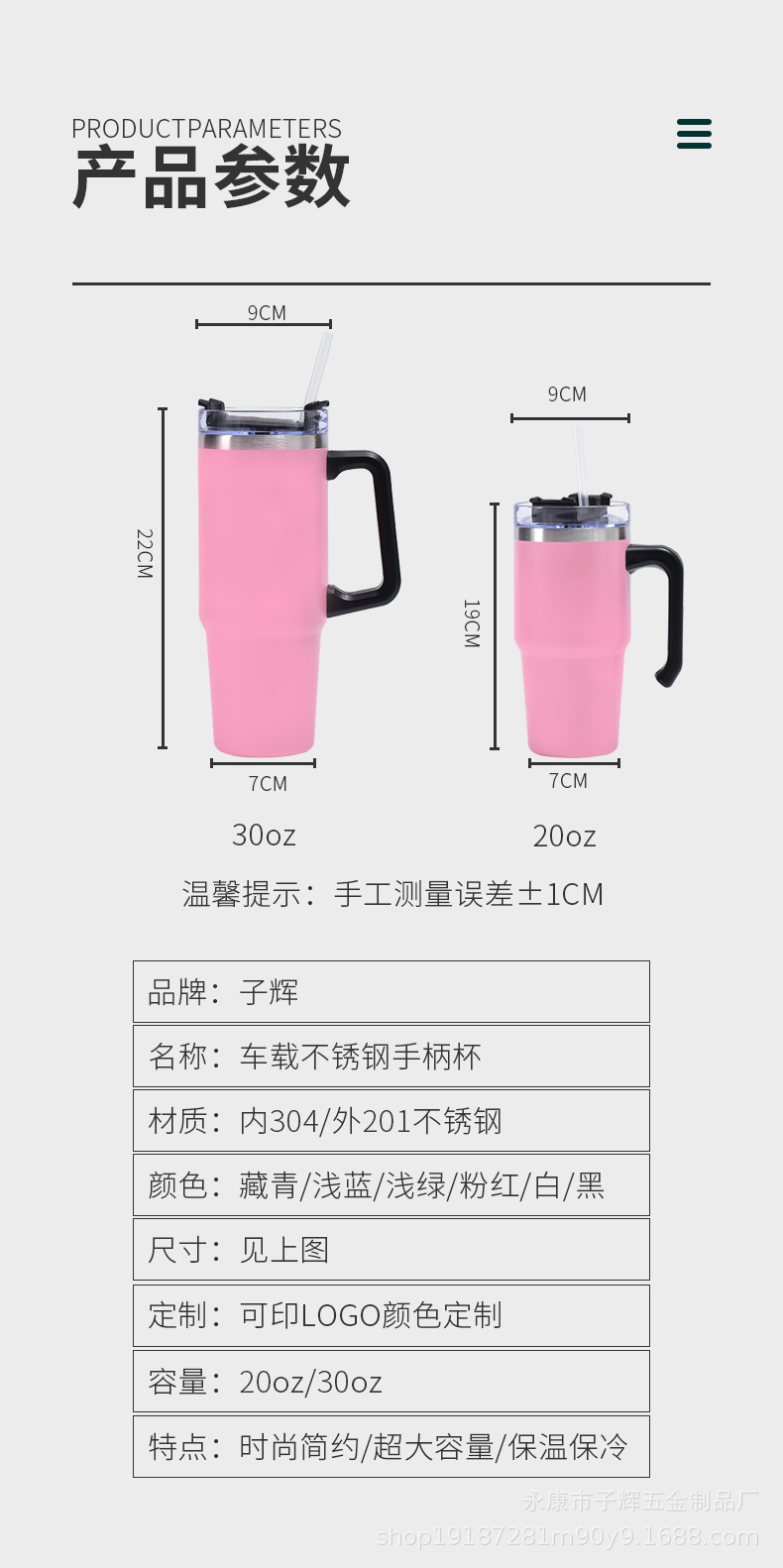 跨境30oz不锈钢汽车杯车载便携手柄吸管杯大容量保温保冷冰霸杯