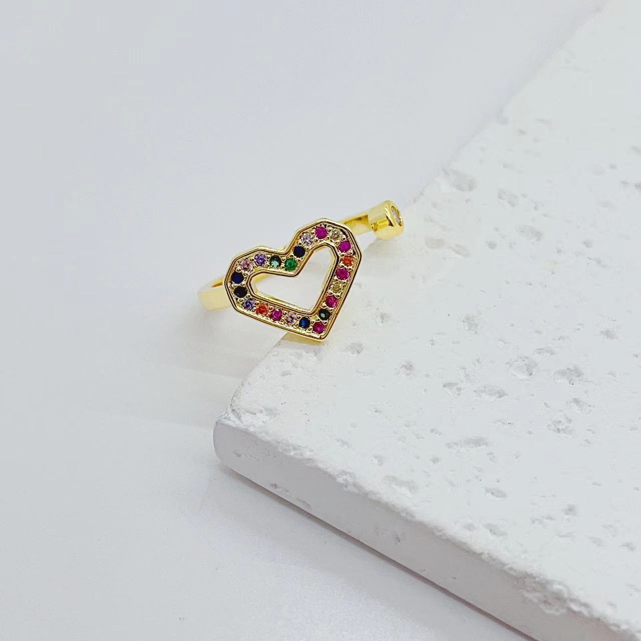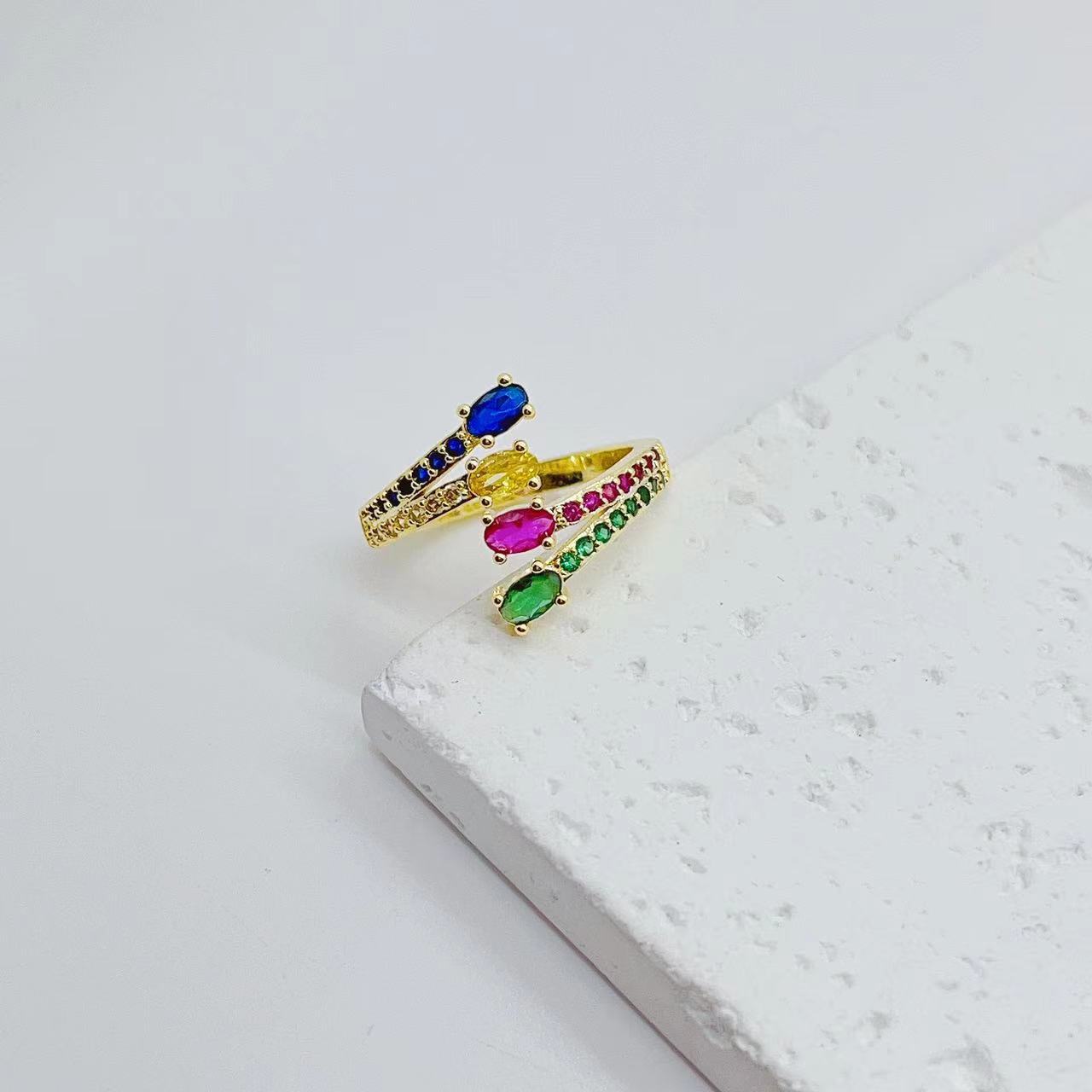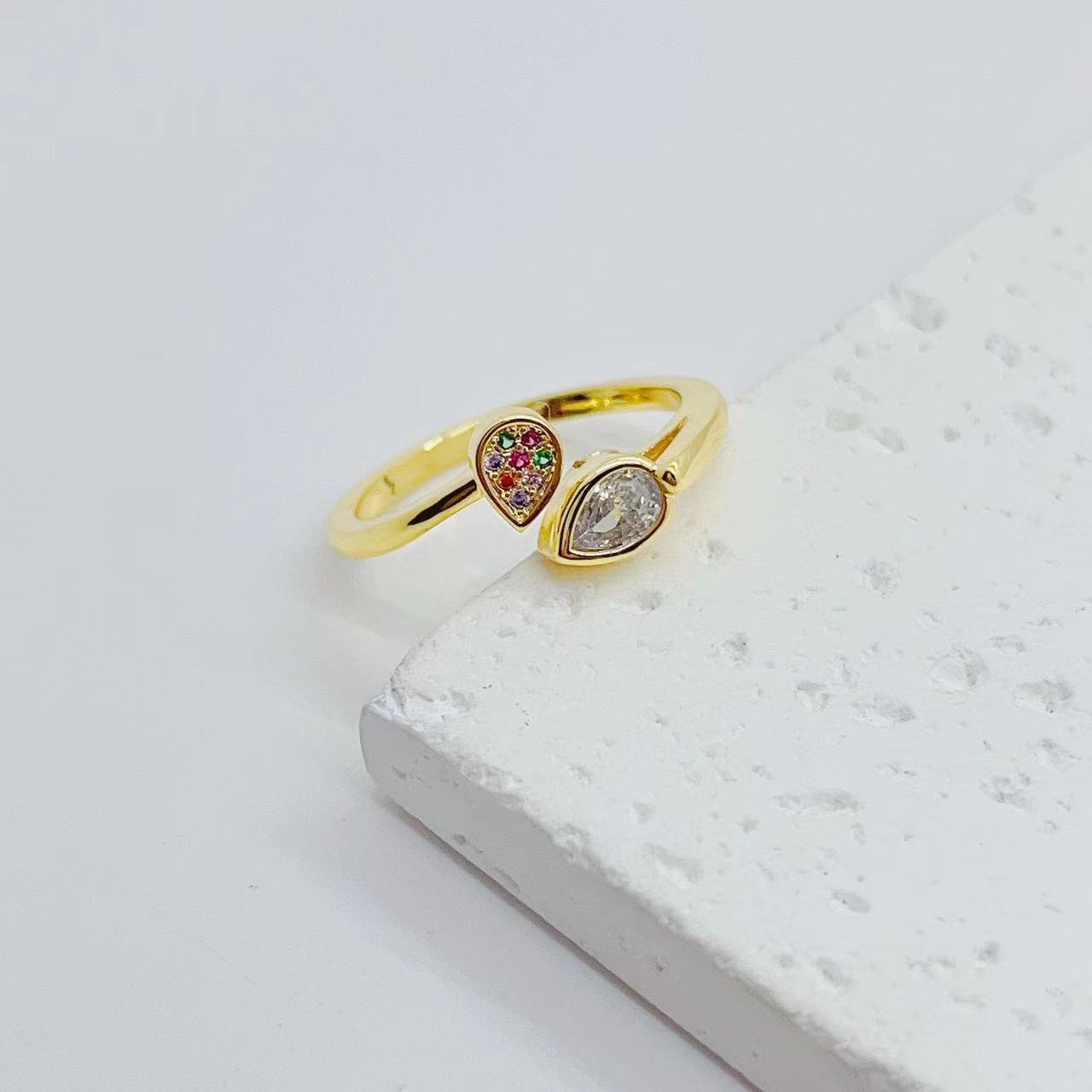 跨境欧美时尚彩色蛋形桃心水滴几何个性冷淡风开口食指女戒指批发
