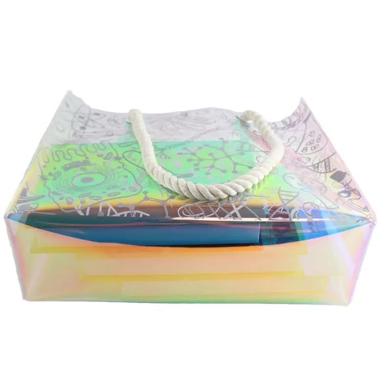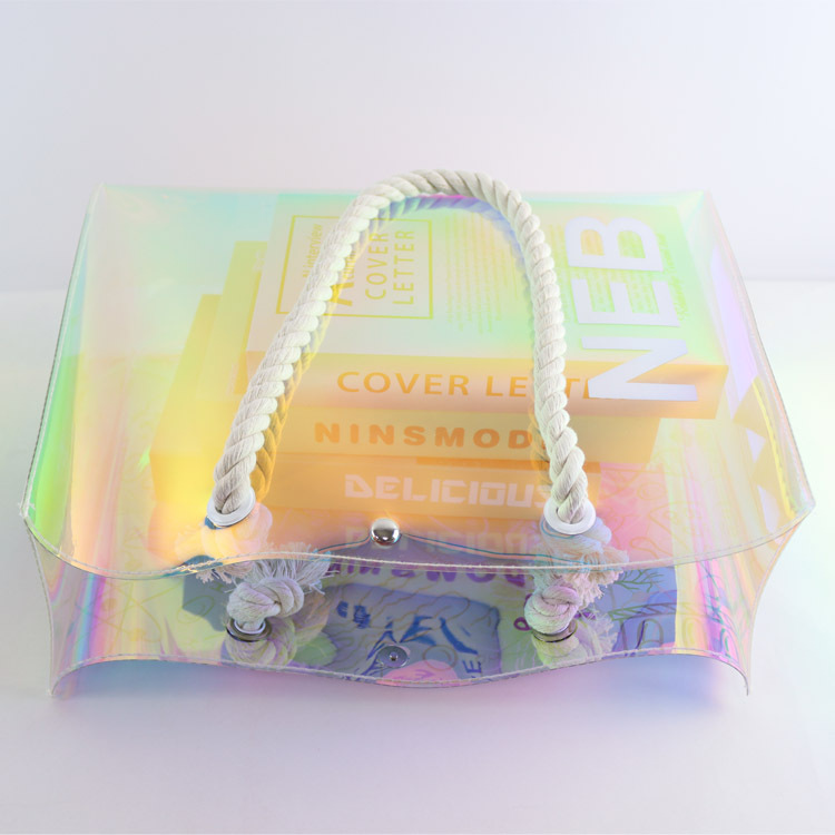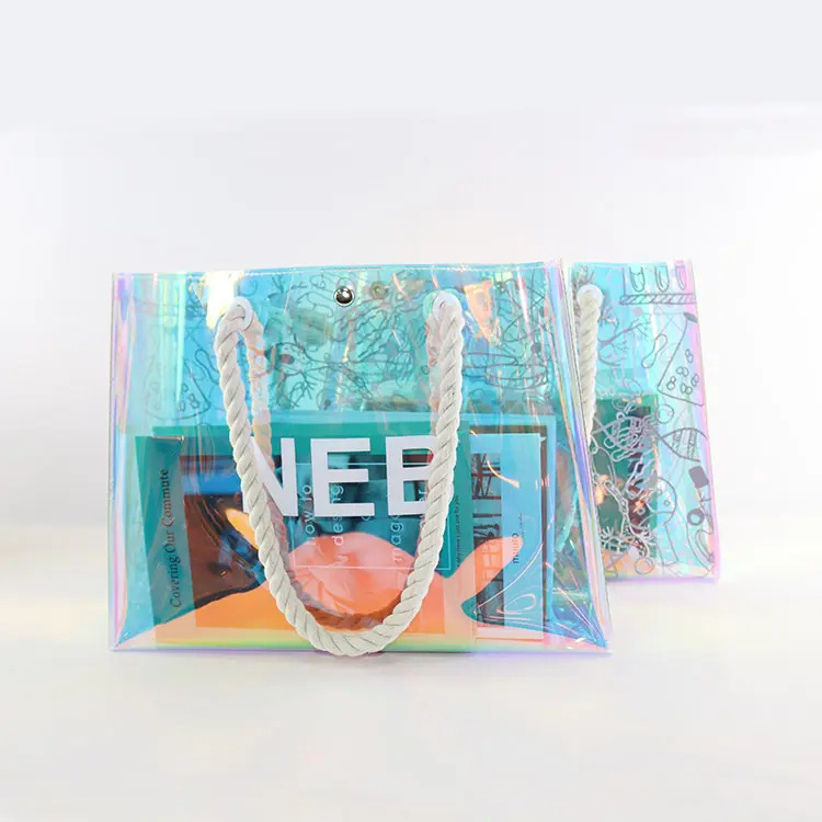 PVC镭射跨境热卖棉绳手提防水海边沙滩手提购物袋礼品袋