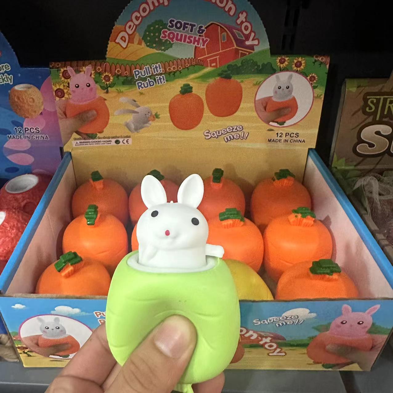抖音同款挤压胡萝卜兔子挤挤杯口袋小动物捏捏乐解压玩具货源批发