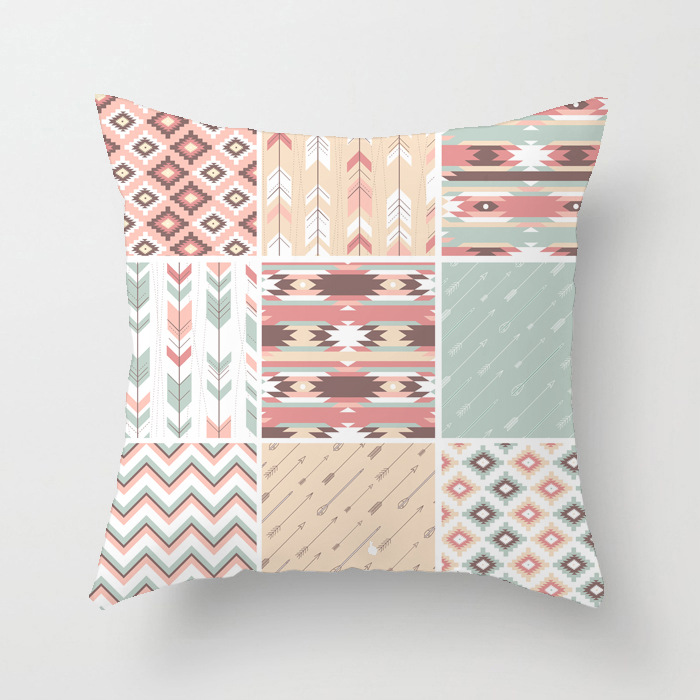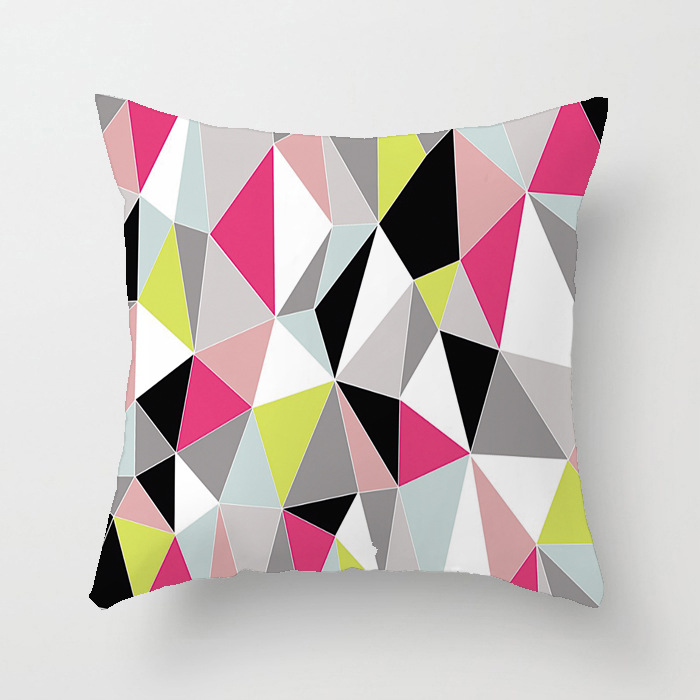 创意几何款个性化抱枕套多边形印花棉麻靠枕黑白款彩色多款可选
