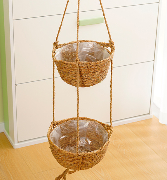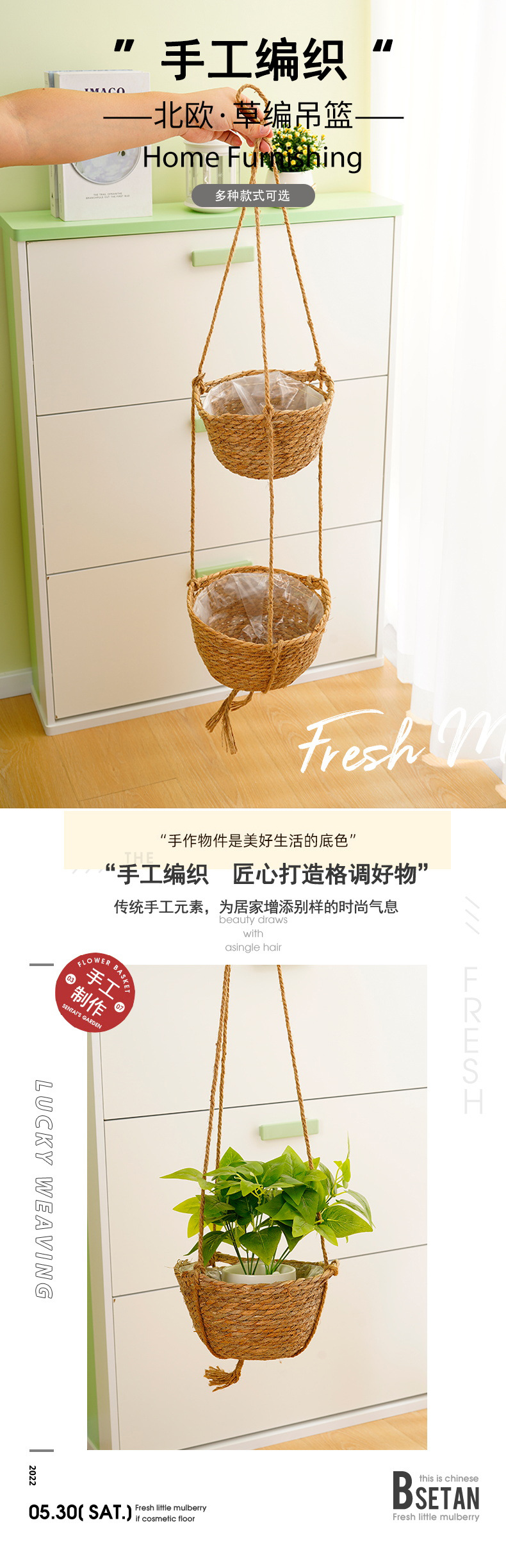 北欧风藤编花篮吊篮吊盆绿萝花盆麻绳垂吊悬挂壁挂草编装饰篮吊篮