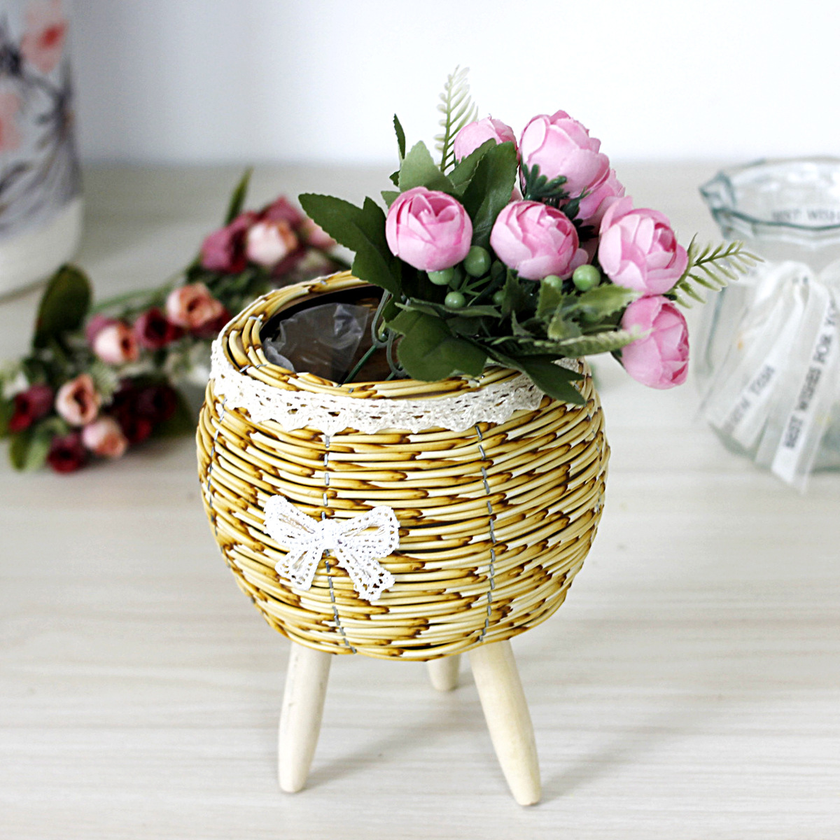 批发迷你小花架客厅室内外阳台花盆多肉花架蕾丝三角腿可爱花架
