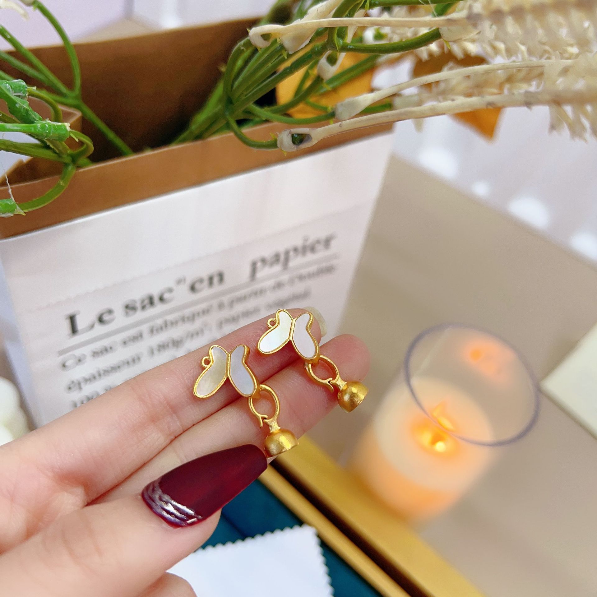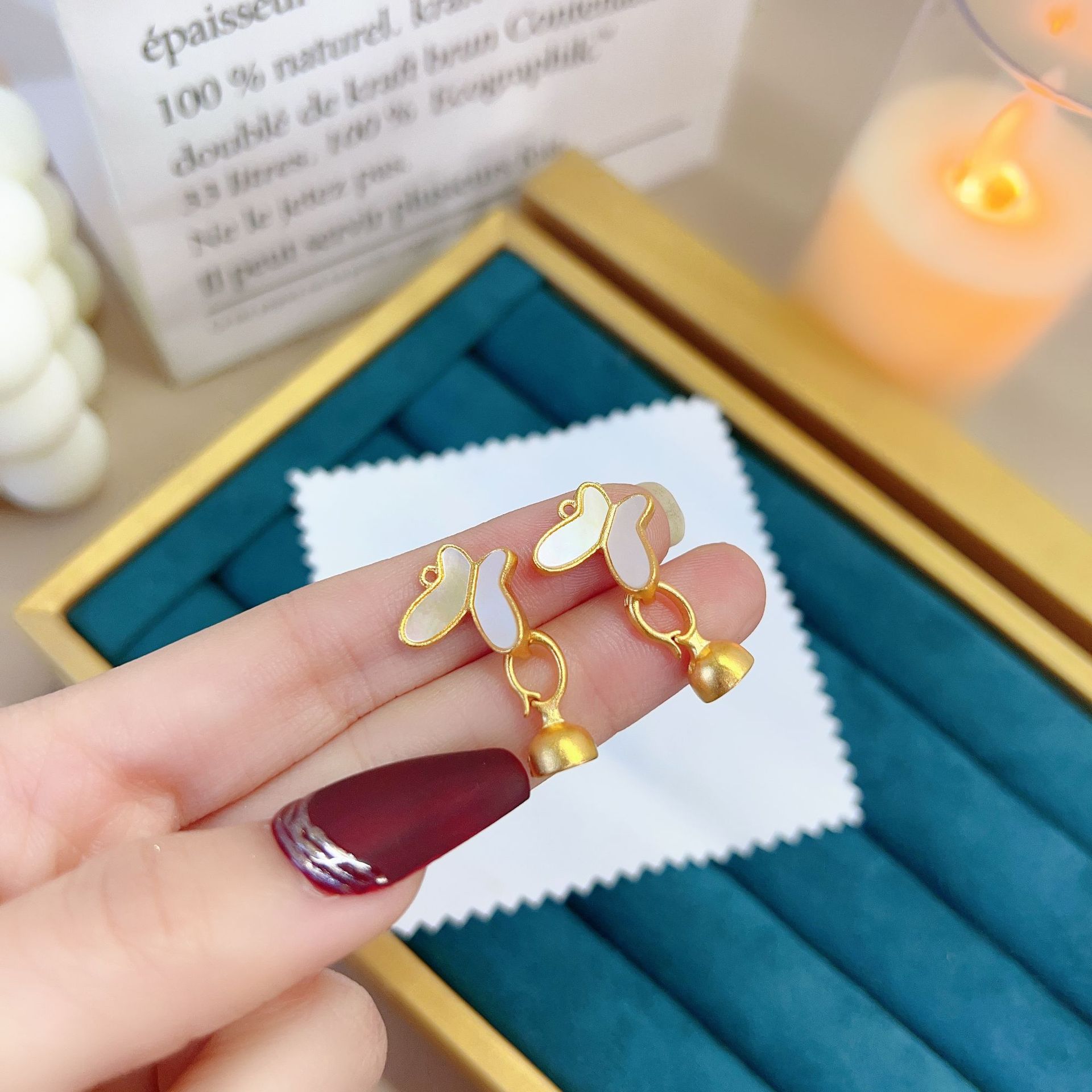 DIY配饰沙金真贝壳蝴蝶结扣子项链手链卡扣毛衣链扣饰品配件