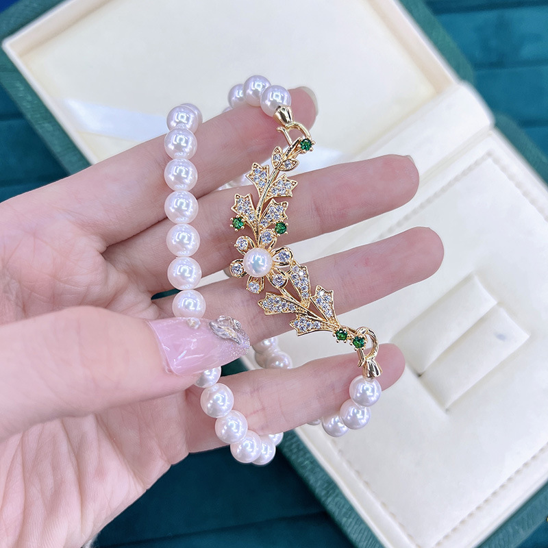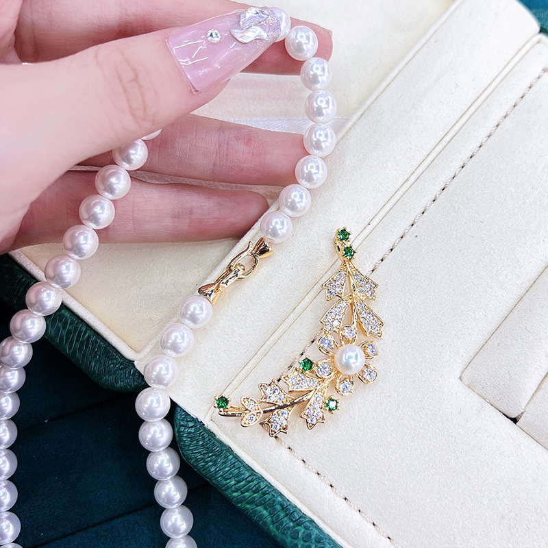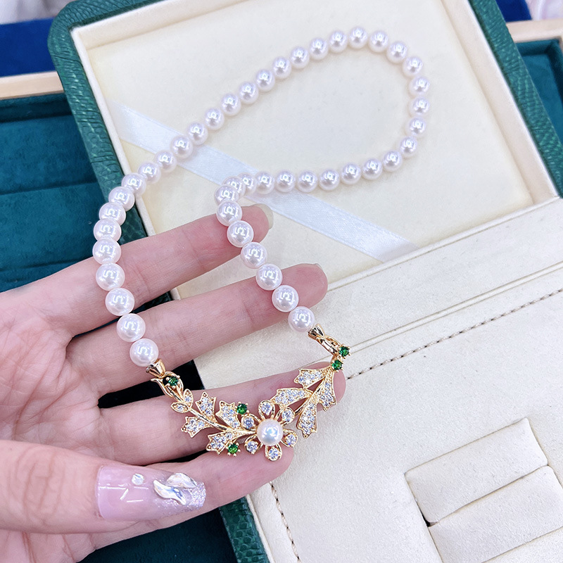 铜镀真金保色树枝叶子扣淡水珍珠项链手链毛衣链扣子diy饰品配件