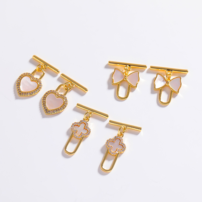 diy小众设计铜镀真金爱心蝴蝶结小型ot扣手链项链连接扣饰品配件