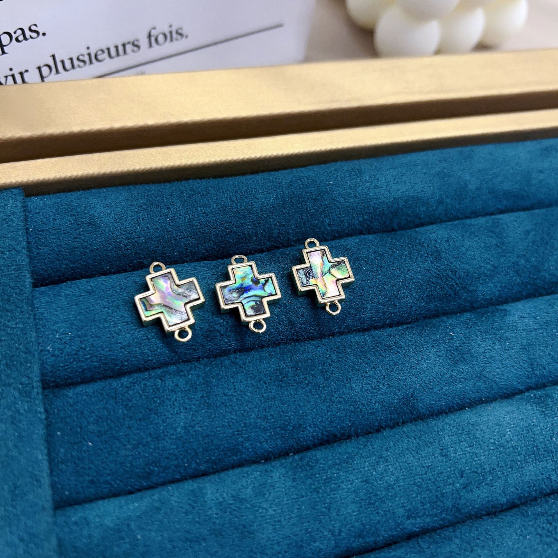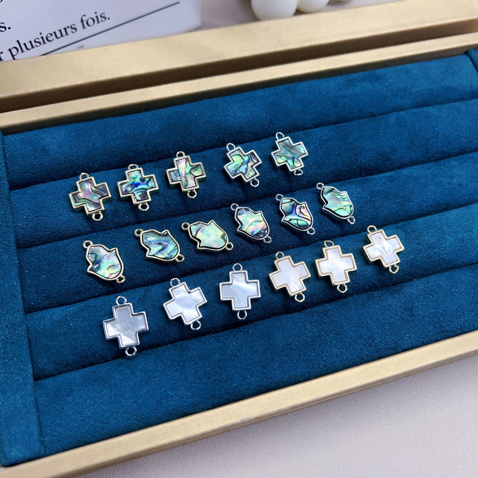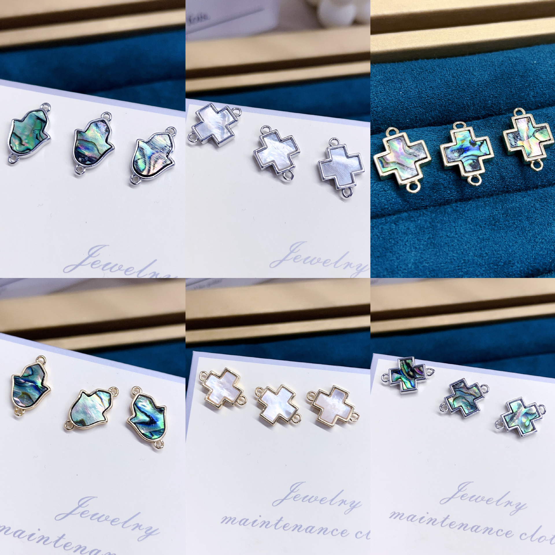 DIY饰品十字形状镶白贝鲍鱼贝万能扣款式手链毛衣链链接扣饰品配