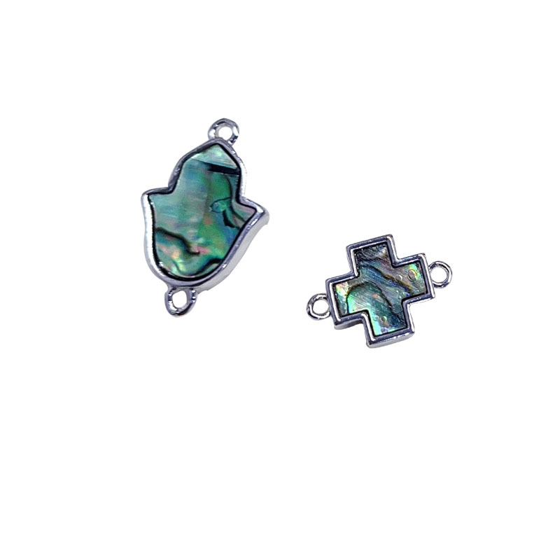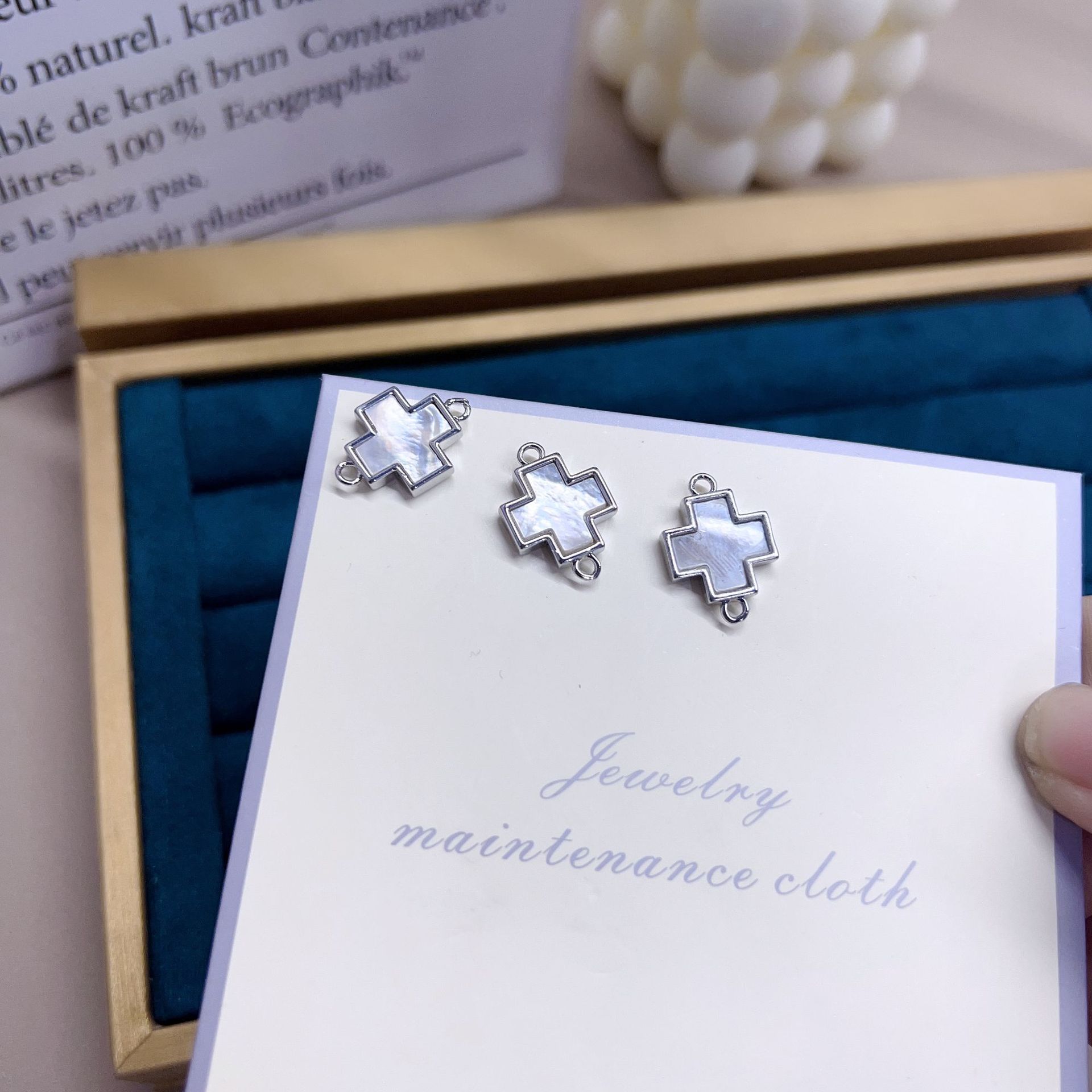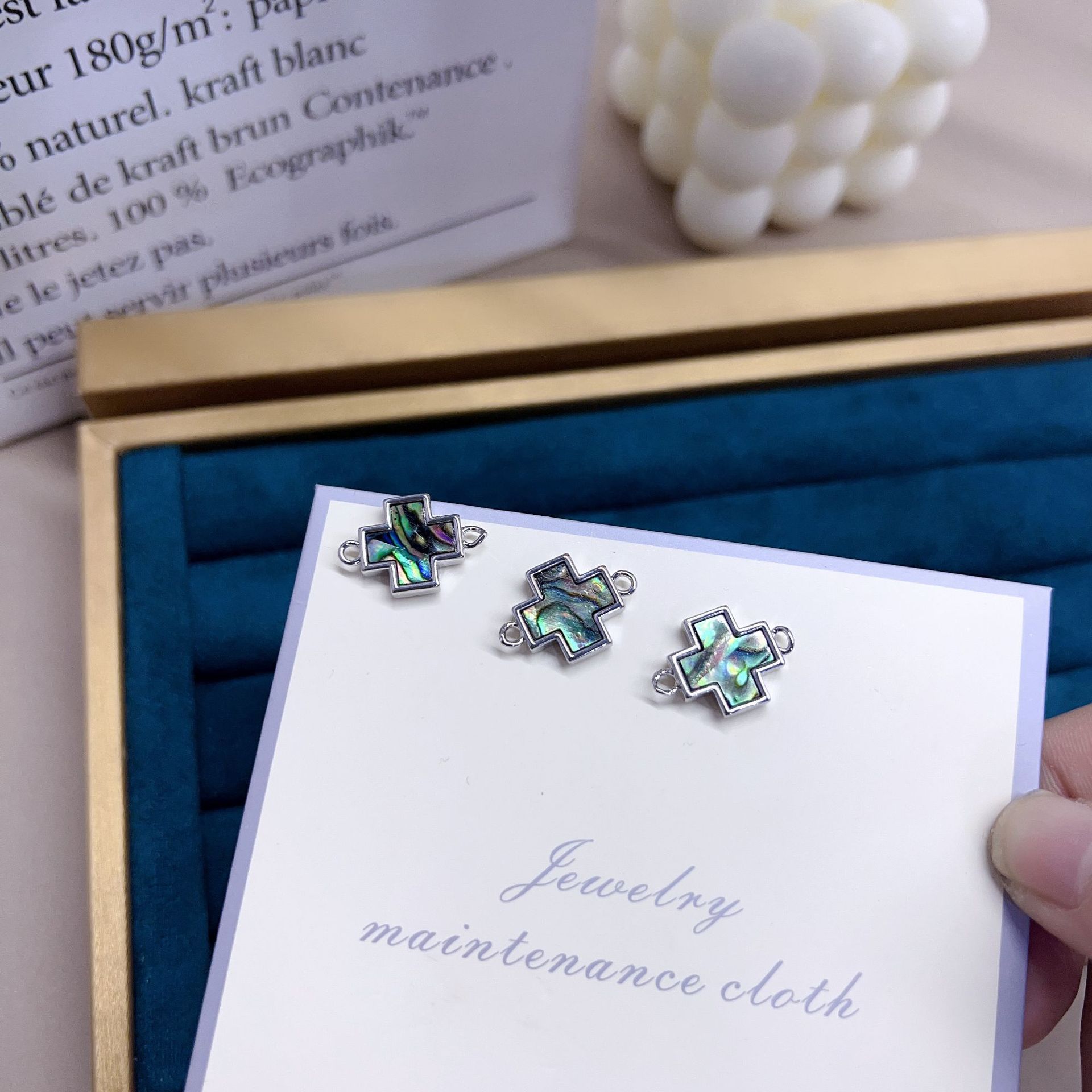DIY饰品十字形状镶白贝鲍鱼贝万能扣款式手链毛衣链链接扣饰品配