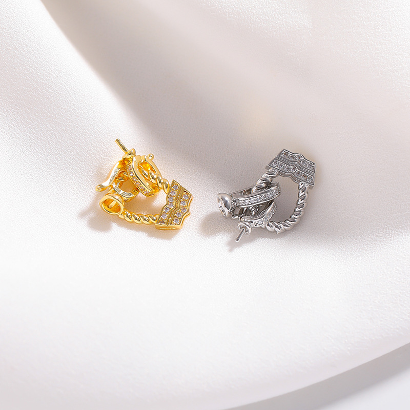 新款铜镀真金小众设计微镶锆石花篮形手链项链链接扣diy饰品配件