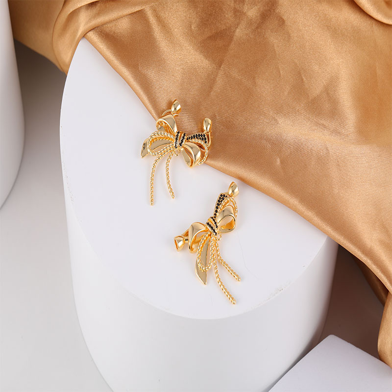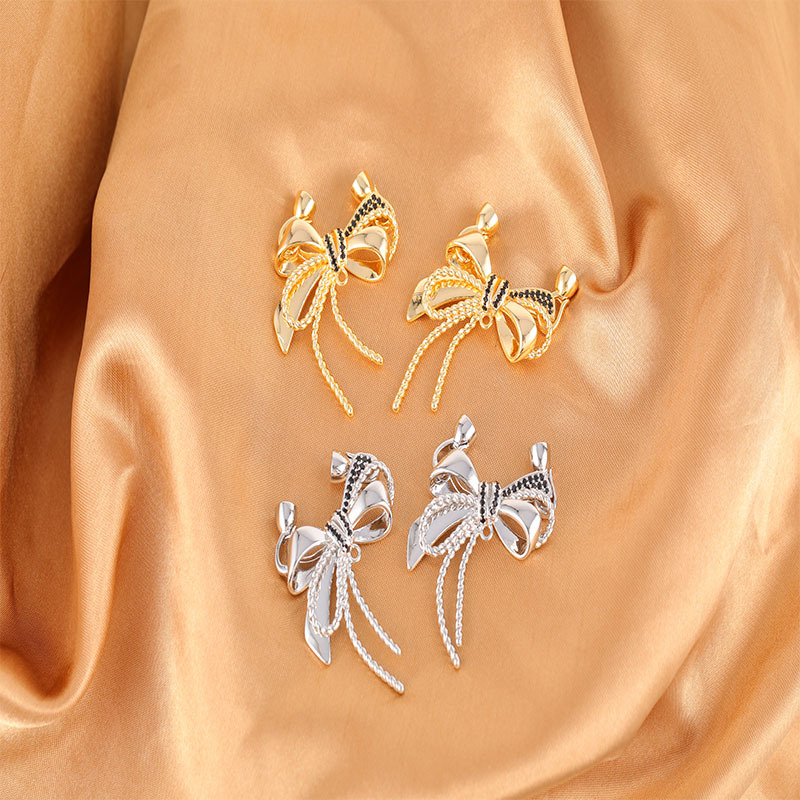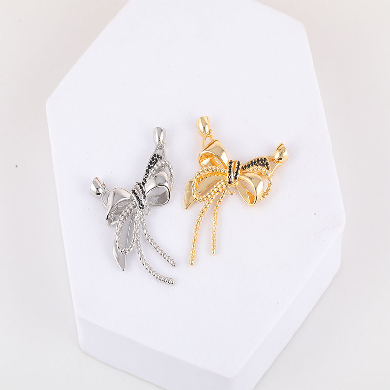 新款铜镀真金黑色锆石蝴蝶结链接扣项链手链万能链接扣饰品配件