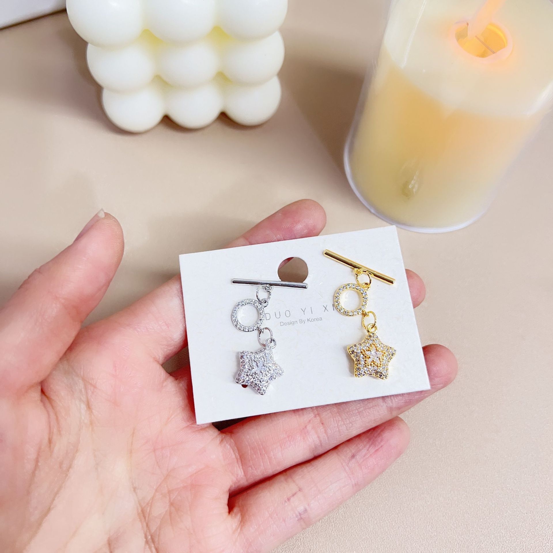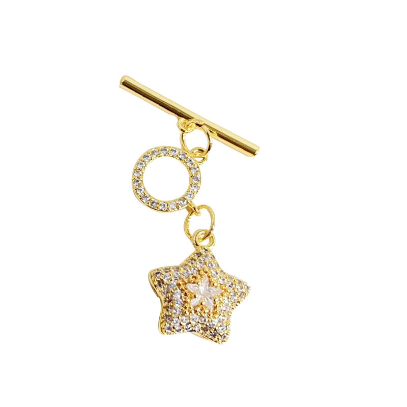 DIY饰品星星吊坠ot扣铜镀真金满锆石星星设计款式清新甜美