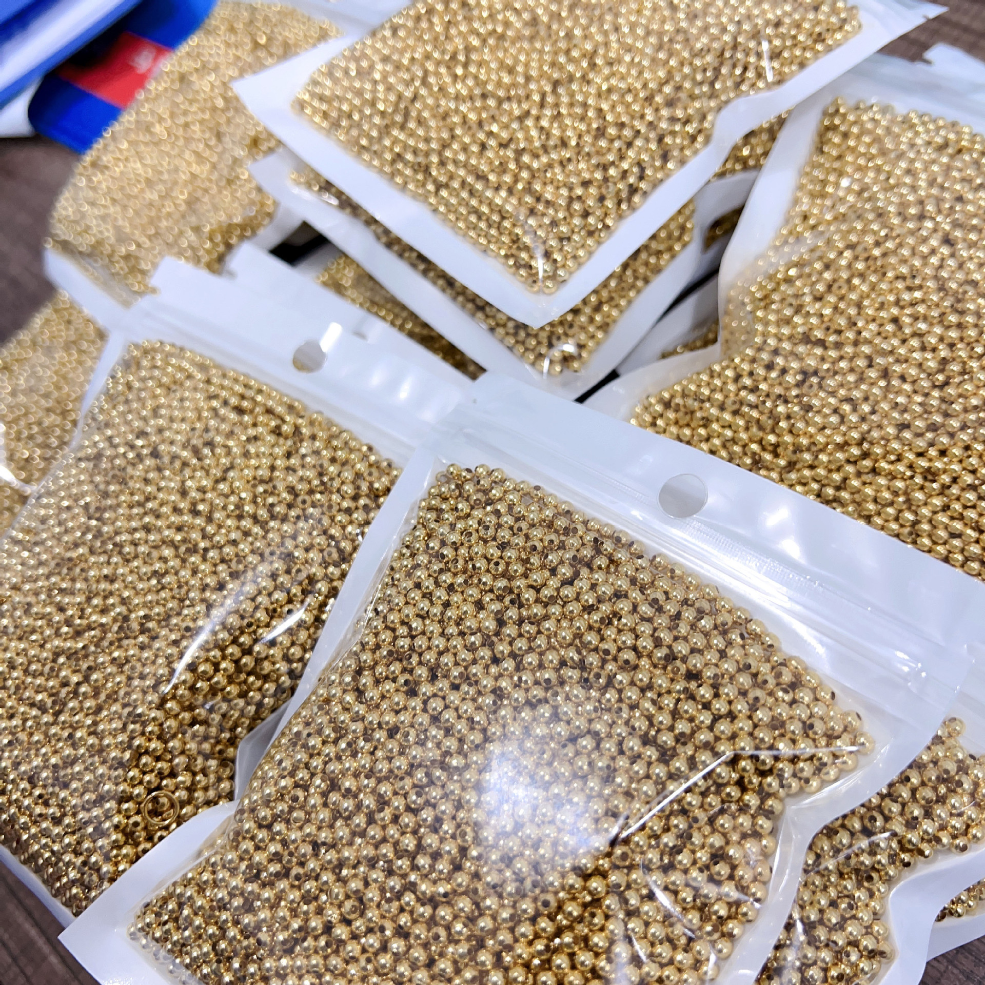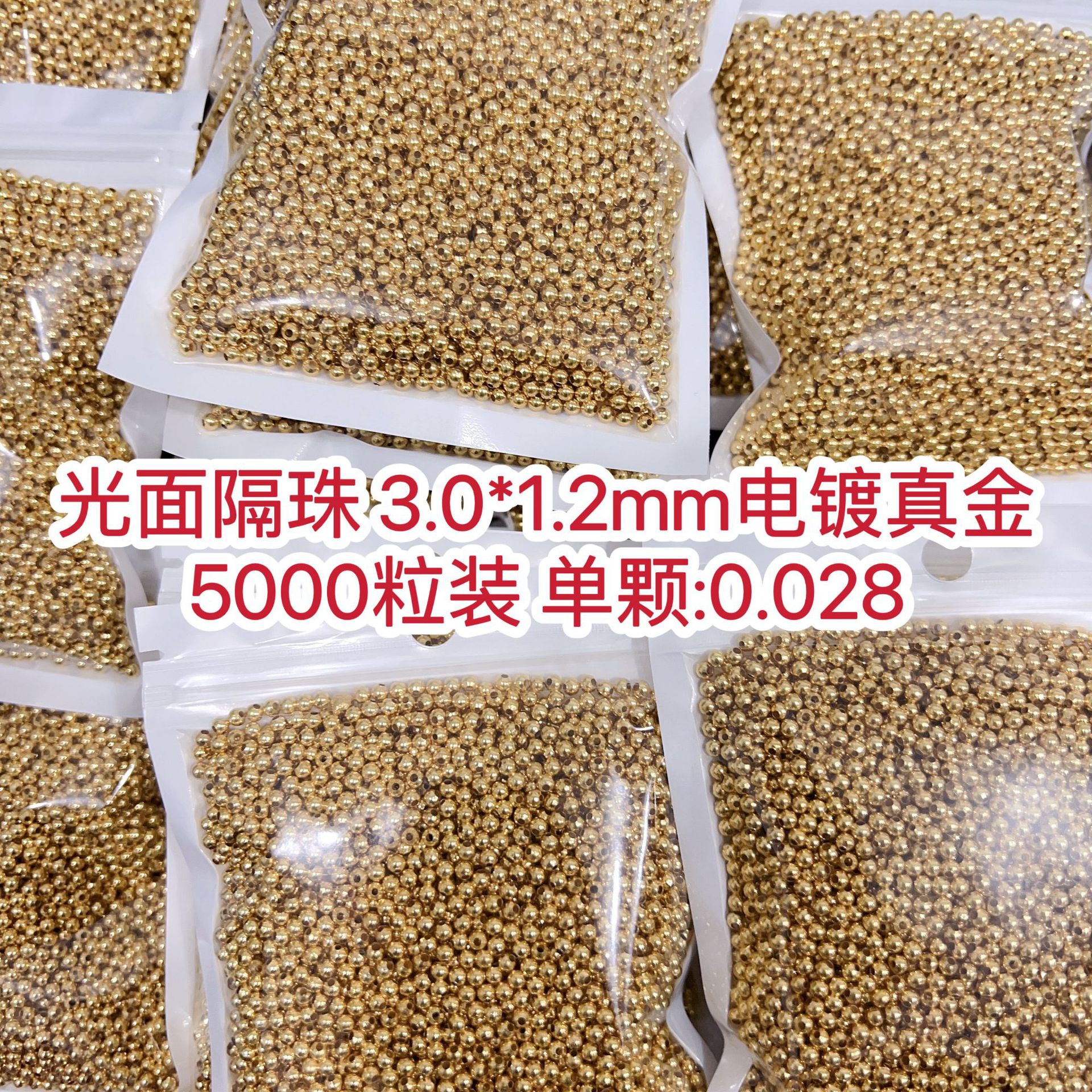 14k包金铜镀真金通孔珠3*1.2mm光面隔珠圆珠手链项链串珠diy配件