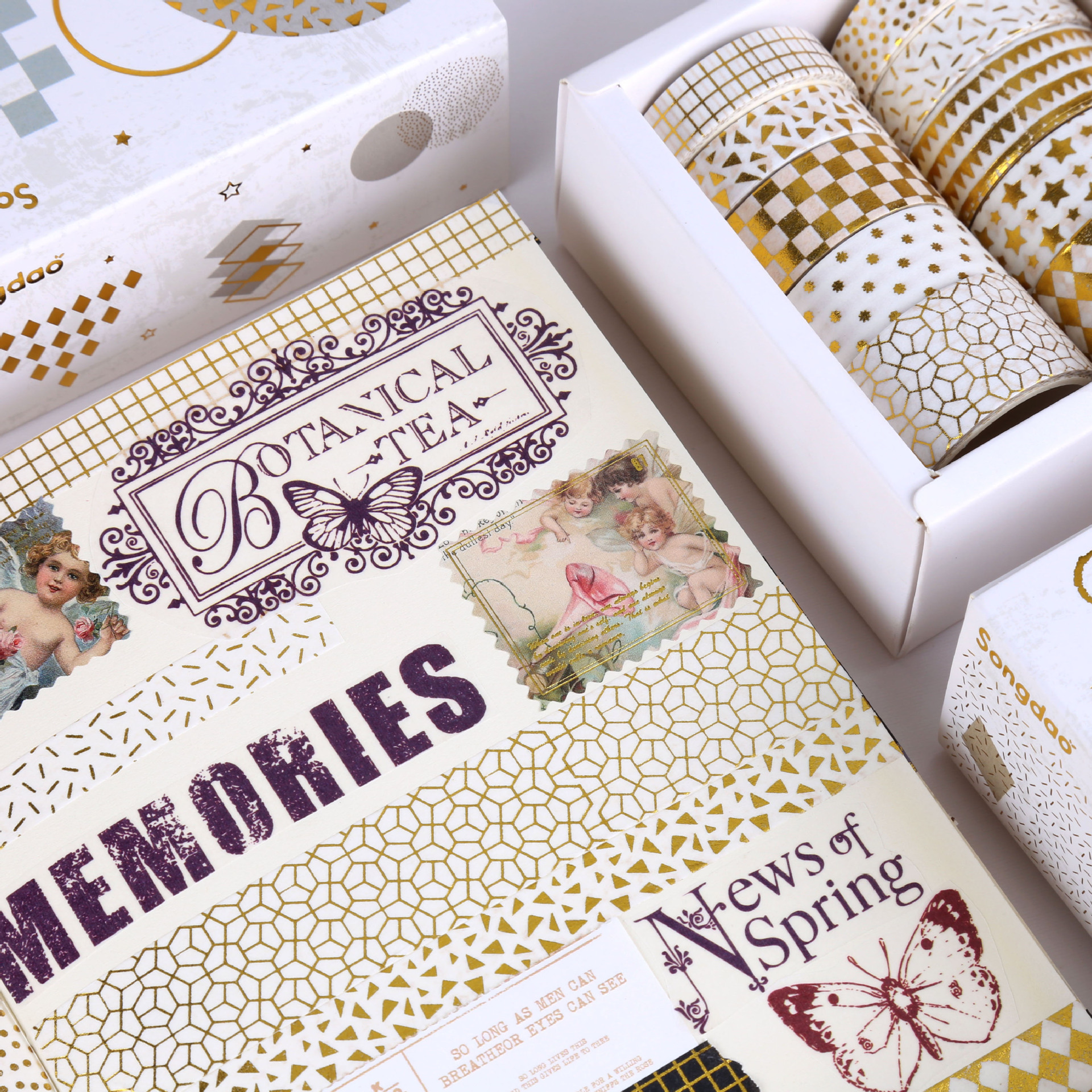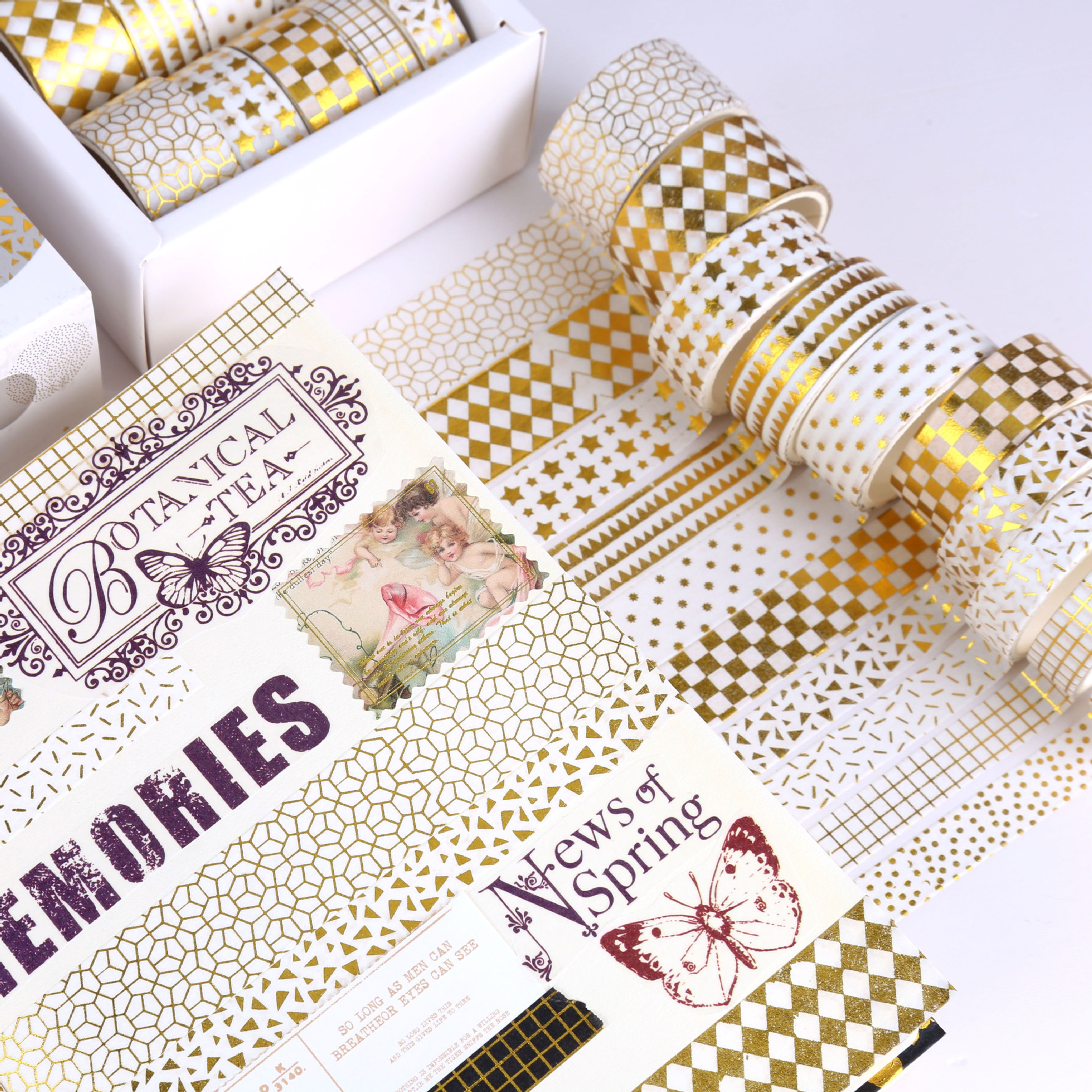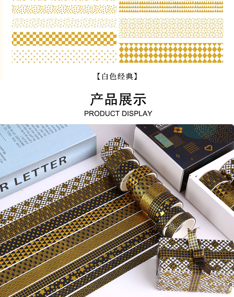 新款浮生光年系列和纸胶带黑白经典烫金胶带套装轻奢组合手账胶带