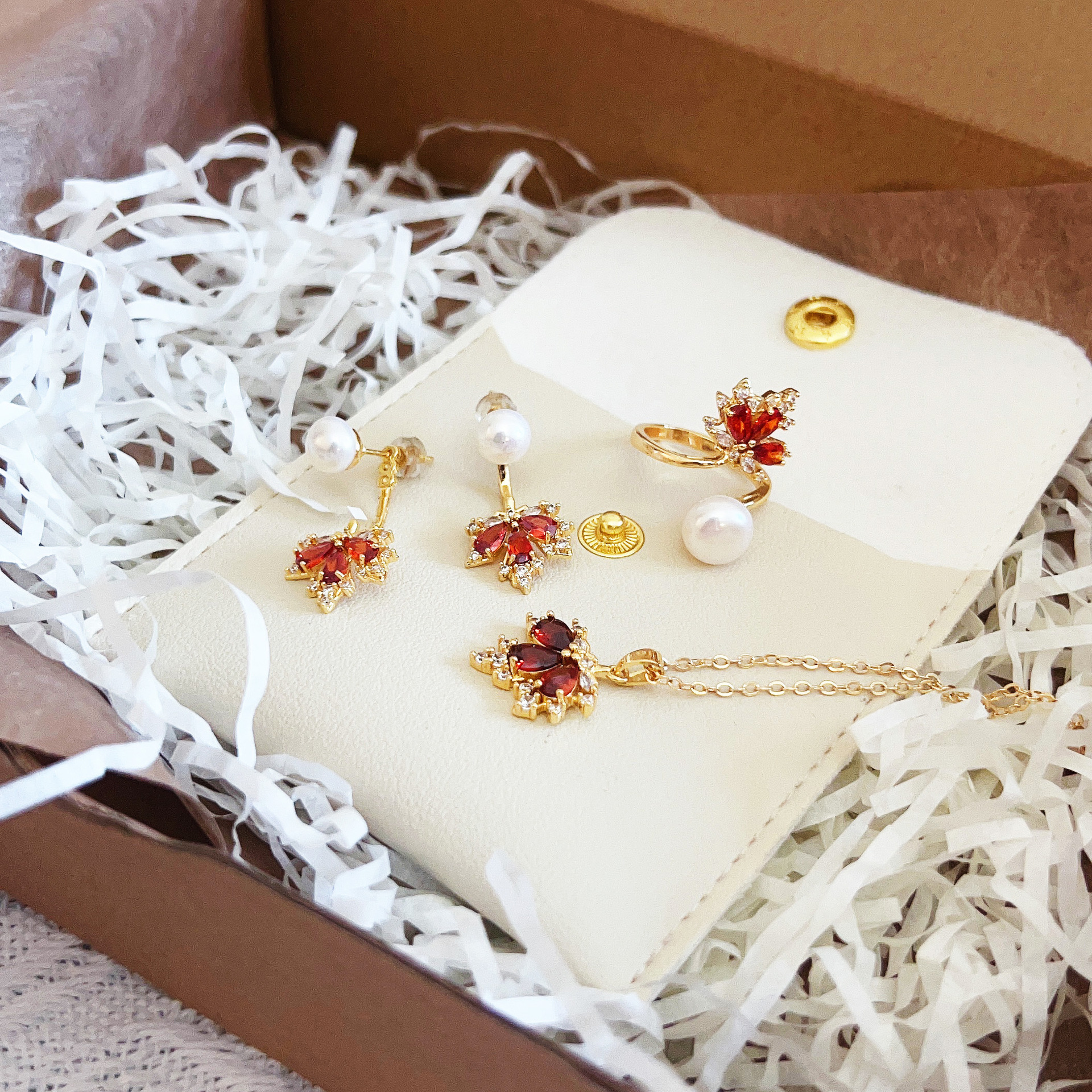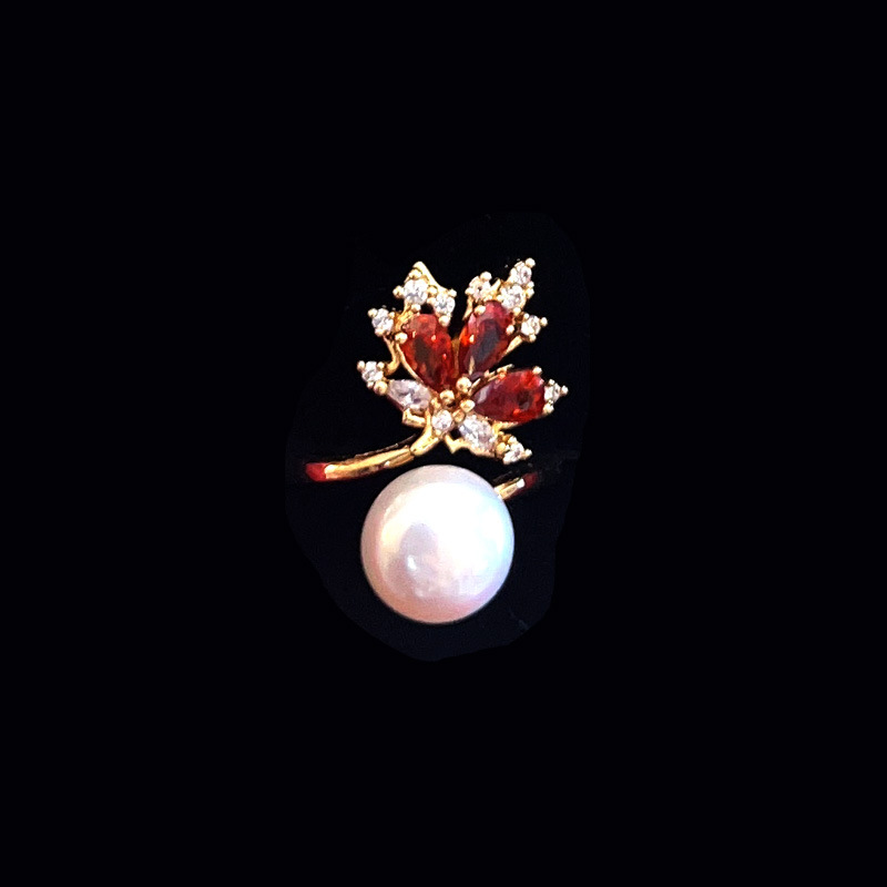 diy铜镀真金配件红枫叶珍珠戒指空托吊坠耳钉耳饰配饰铜镀真金