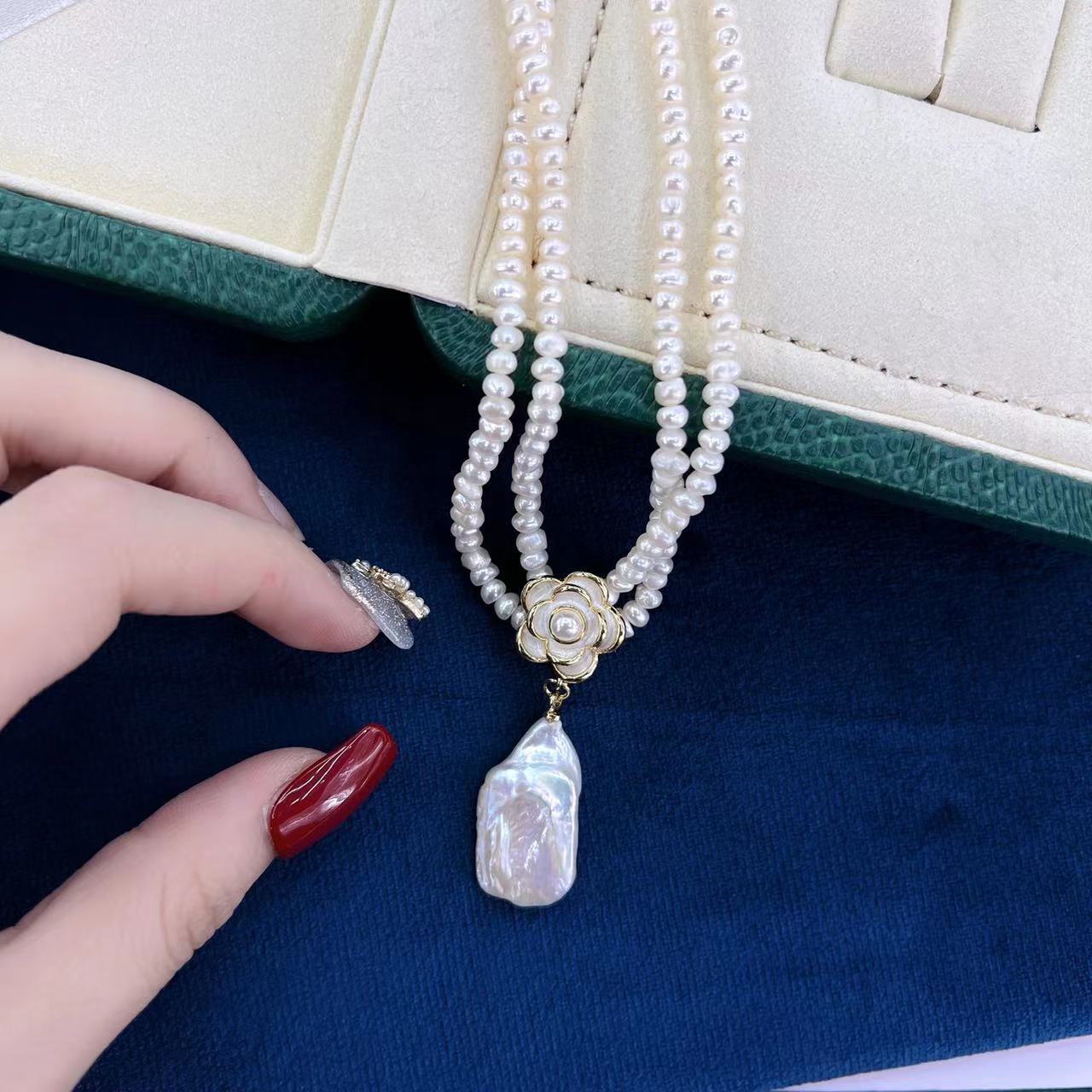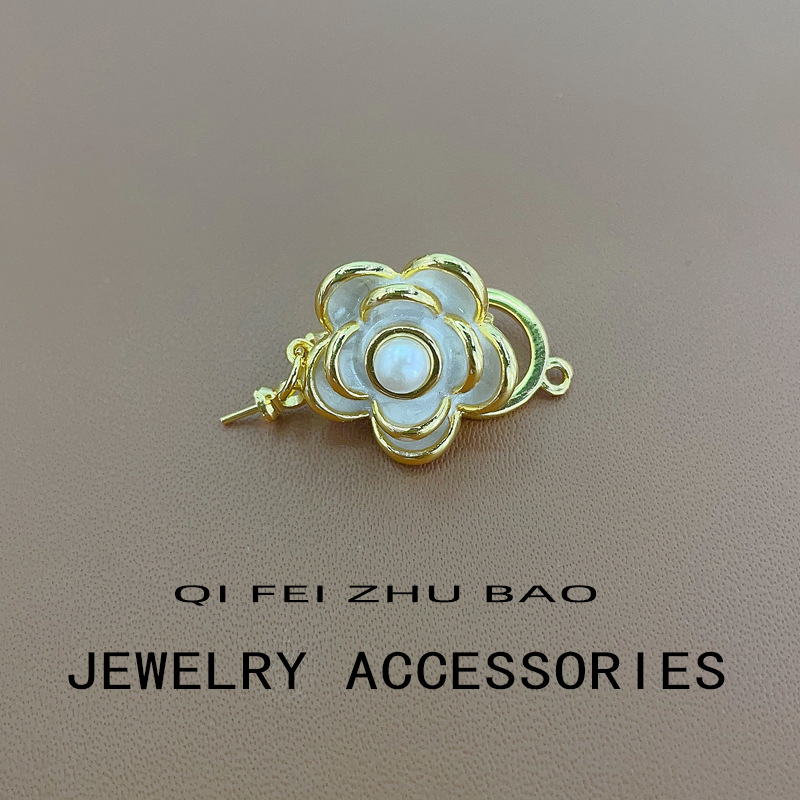 18k包金保色玫瑰花扣子淡水珍珠项链手链毛衣链扣子diy饰品配件