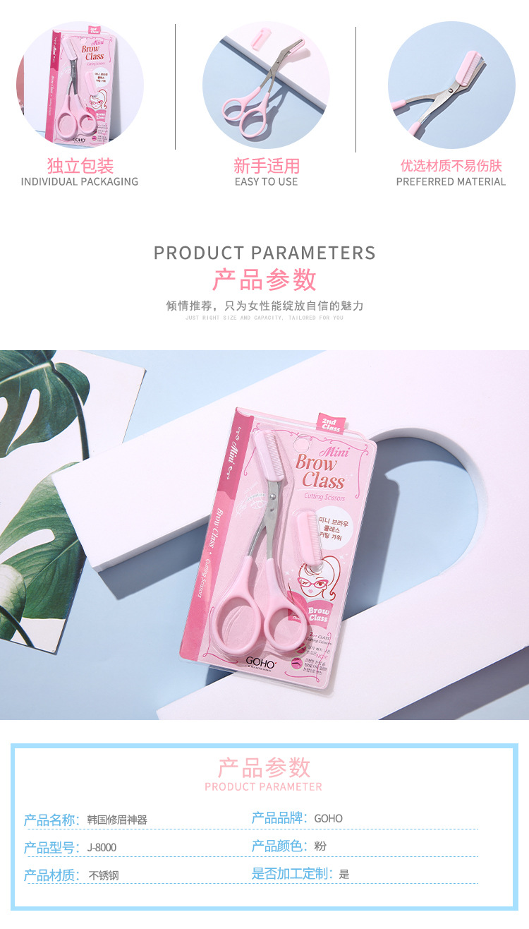 修眉剪刀套装 带眉梳美容剪刀初学者眉毛修剪器 韩文插卡包装