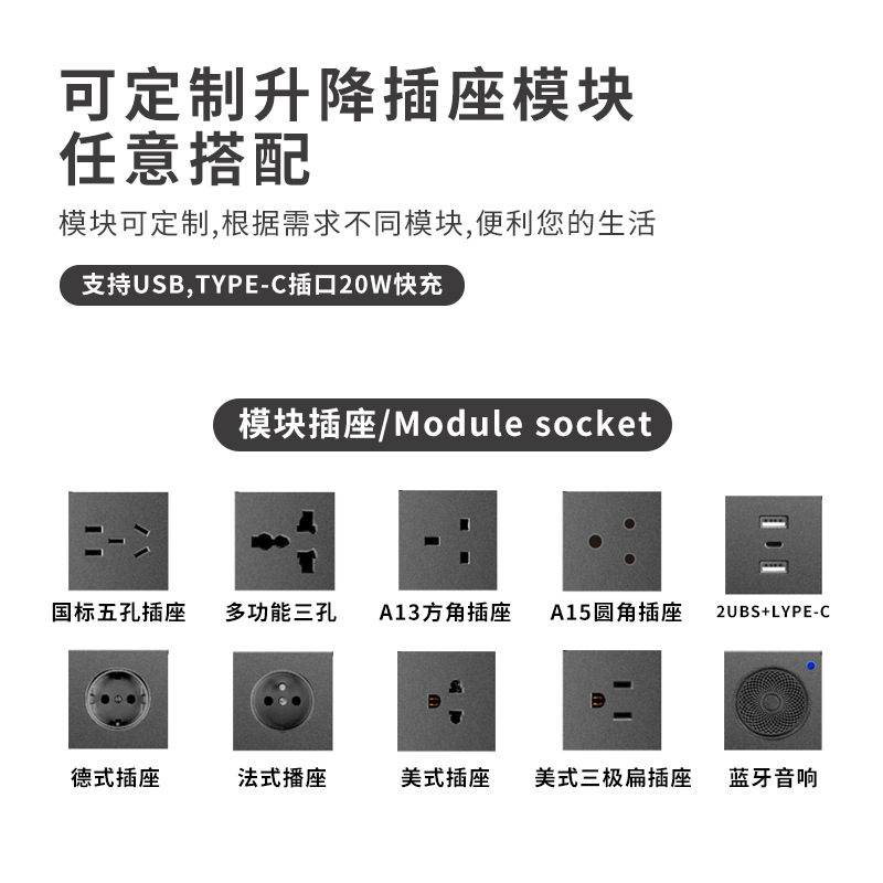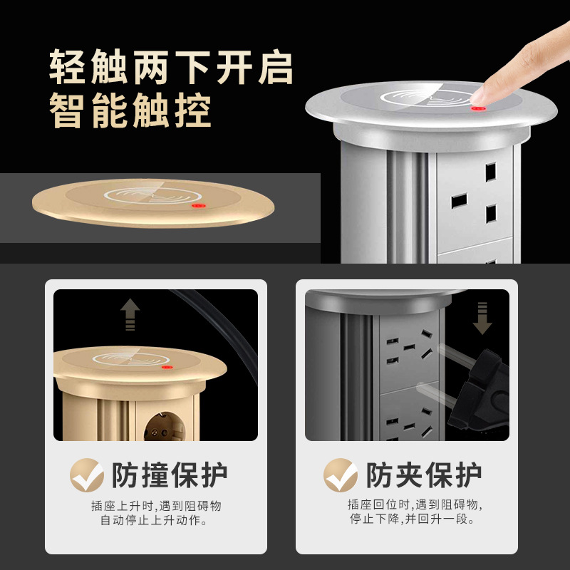 隐藏升降插座插排条岛台面专用伸缩五孔USB音响嵌入式电动电插板