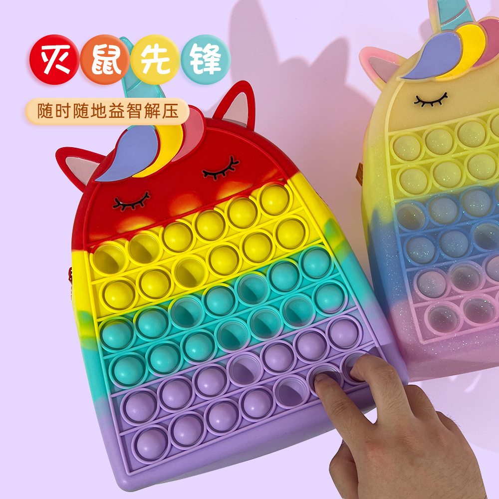 跨境独角兽硅胶双肩包灭鼠先锋儿童益智解压包防水大容量背包批发