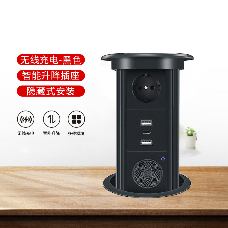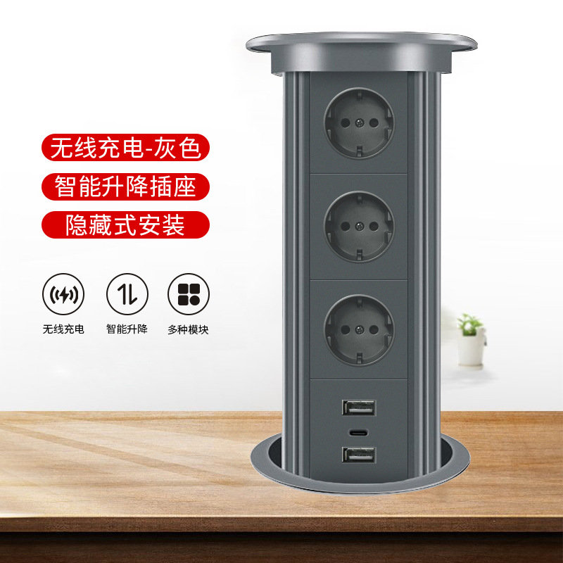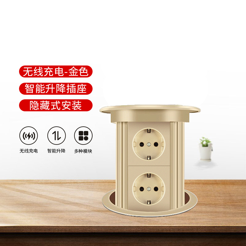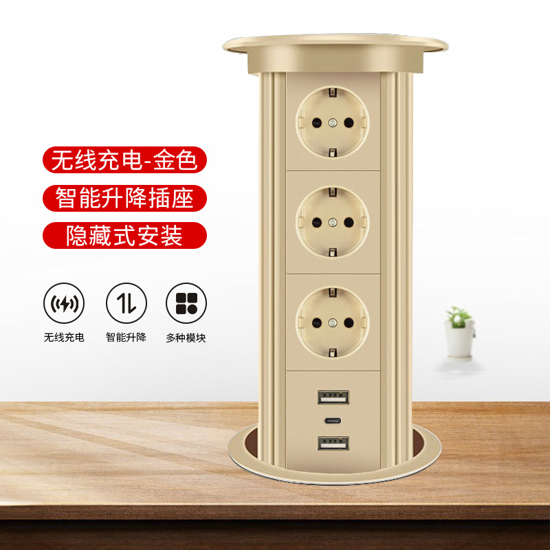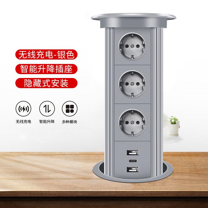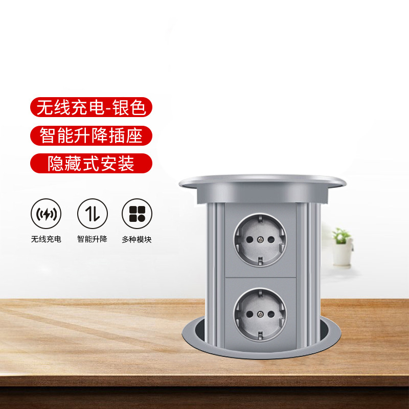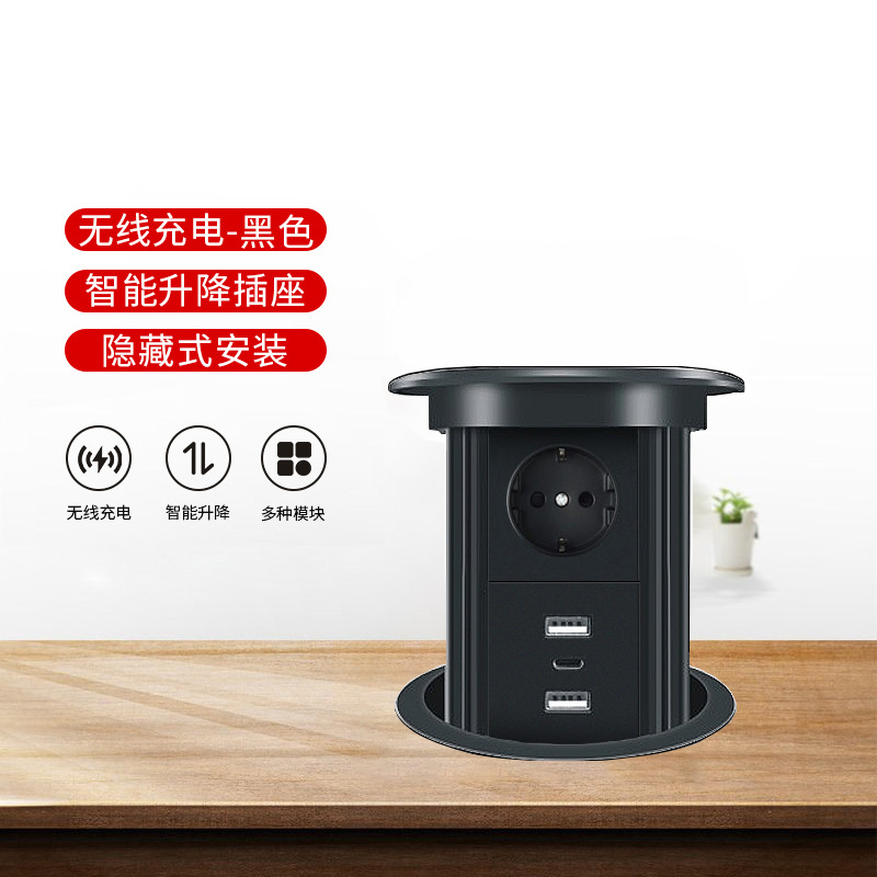 德式法标欧盟德国俄罗斯智能电动升降嵌入式桌面无线充USB插座面