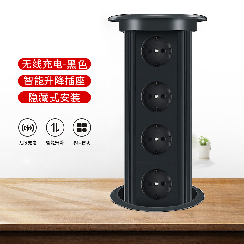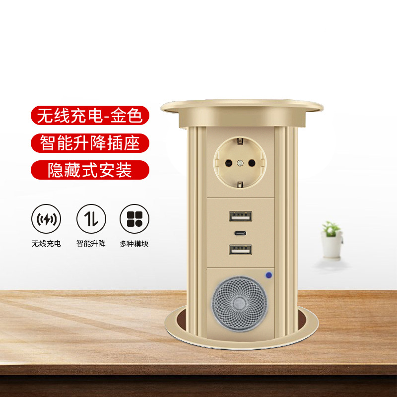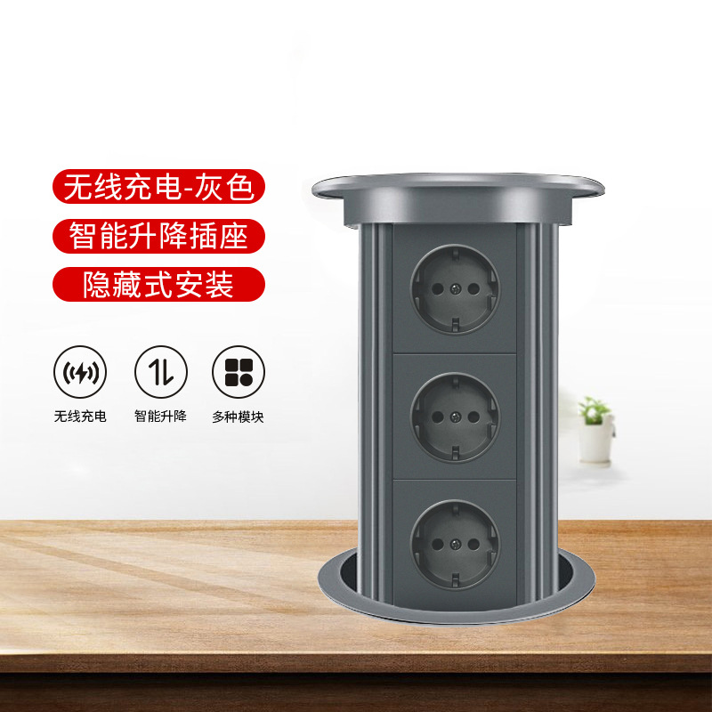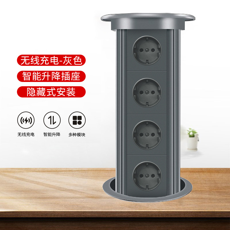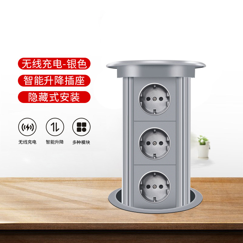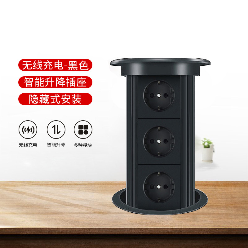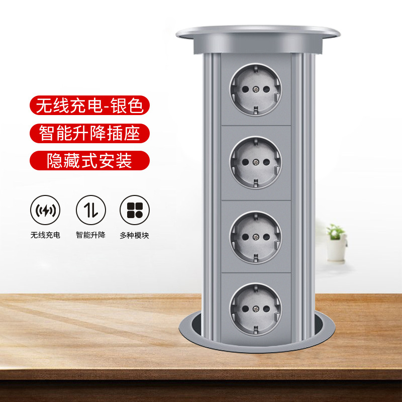 德式法标欧盟德国俄罗斯智能电动升降嵌入式桌面无线充USB插座面