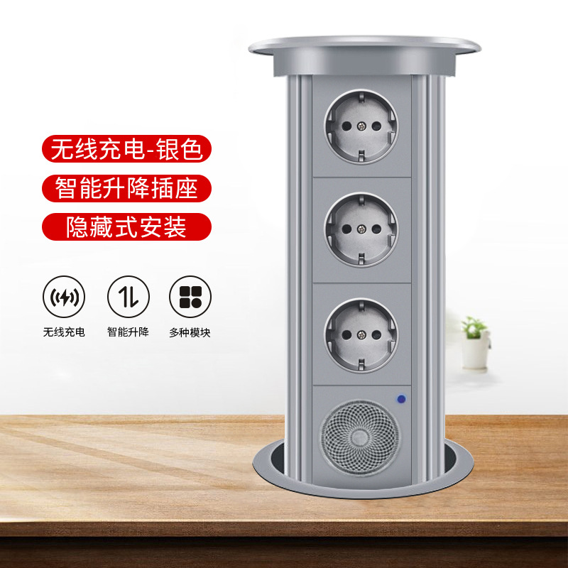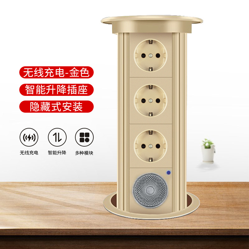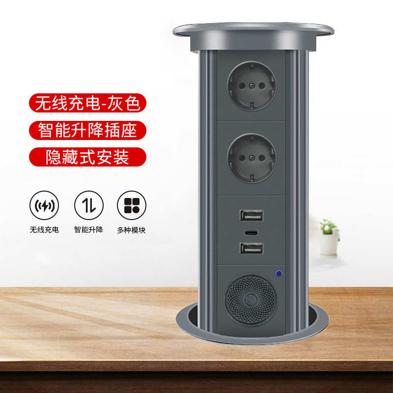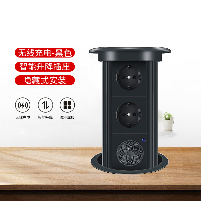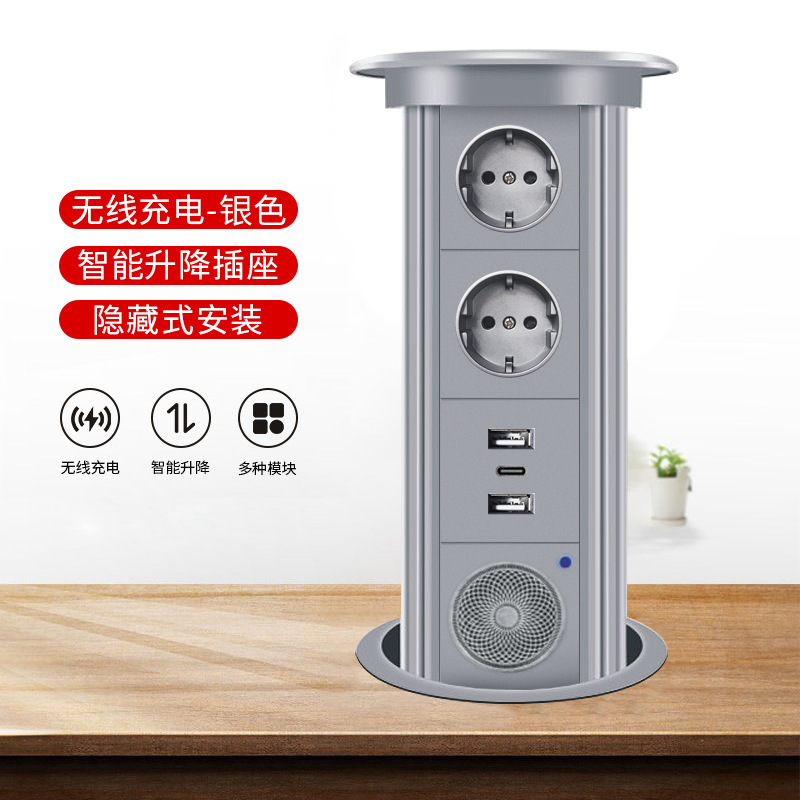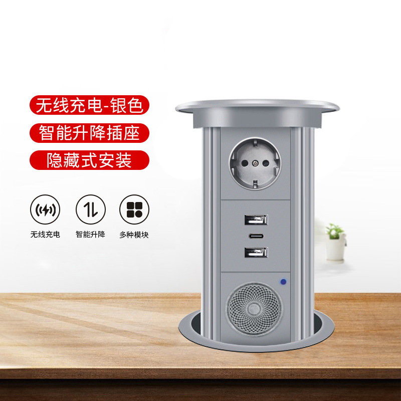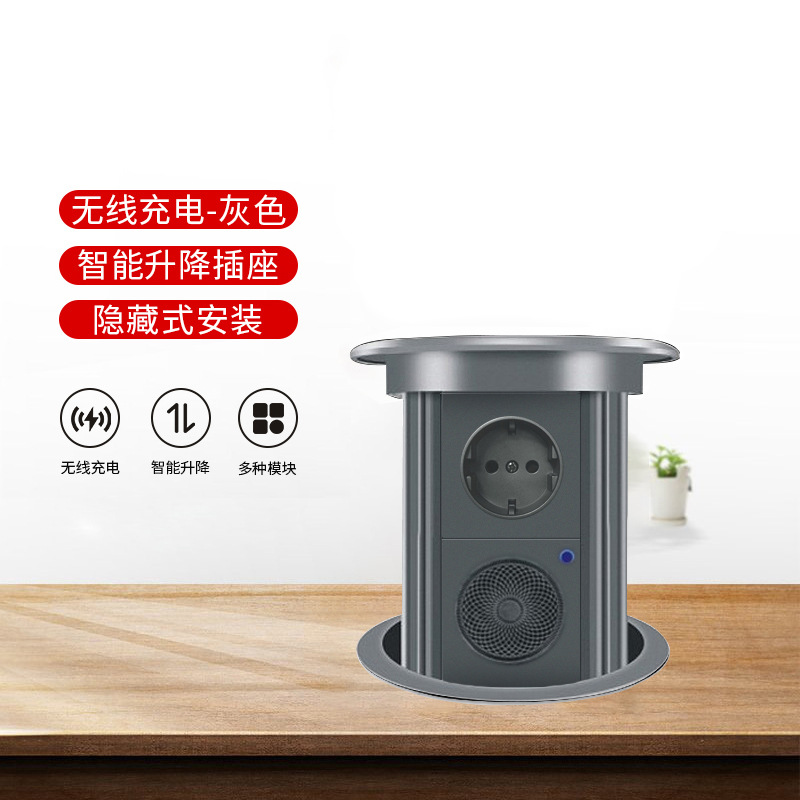 德式法标欧盟德国俄罗斯智能电动升降嵌入式桌面无线充USB插座面
