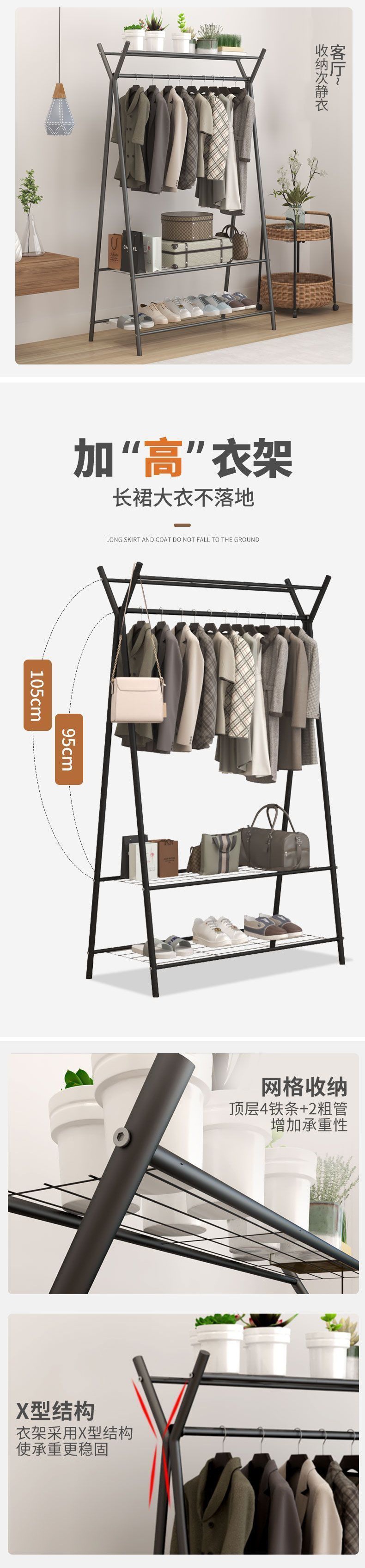 落地折叠晒衣架衣架立式晾衣架加厚加粗结实挂衣架晾衣杆学生宿舍