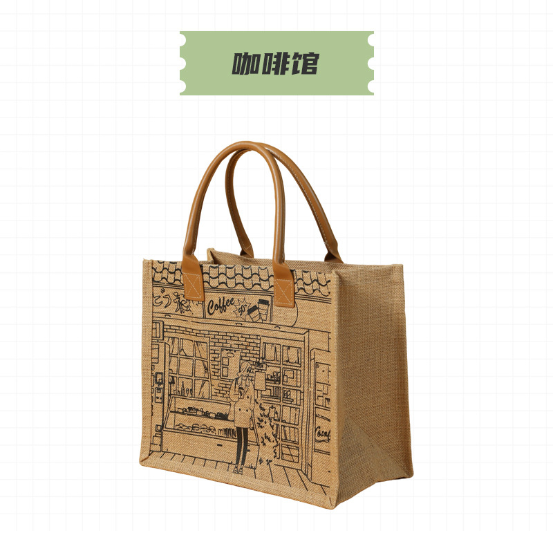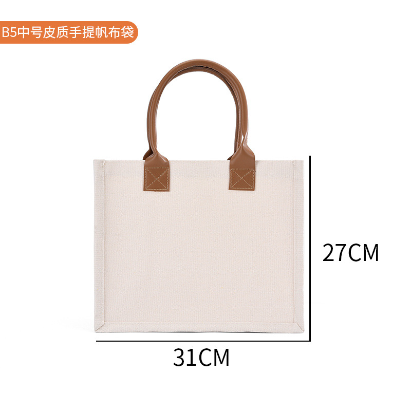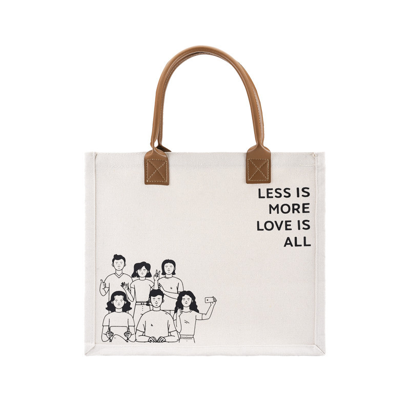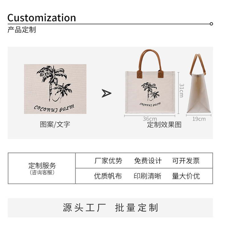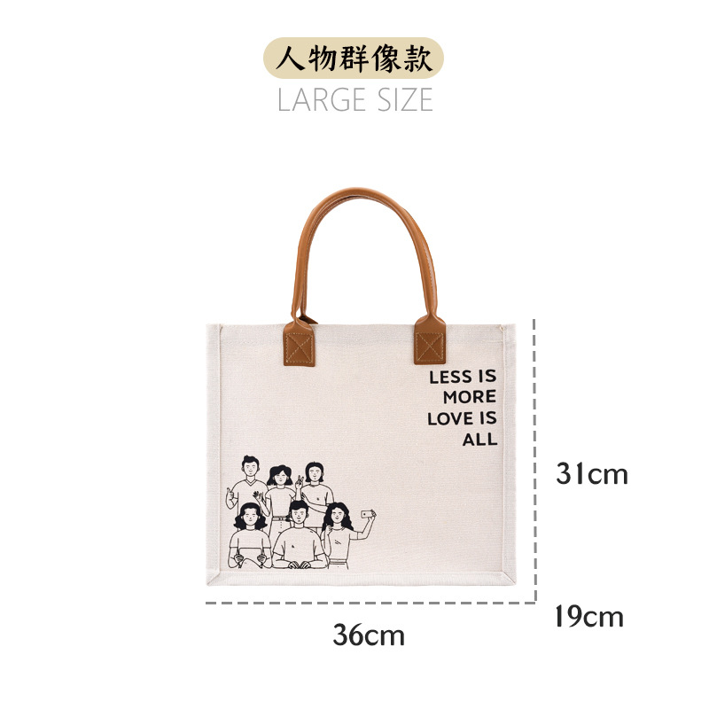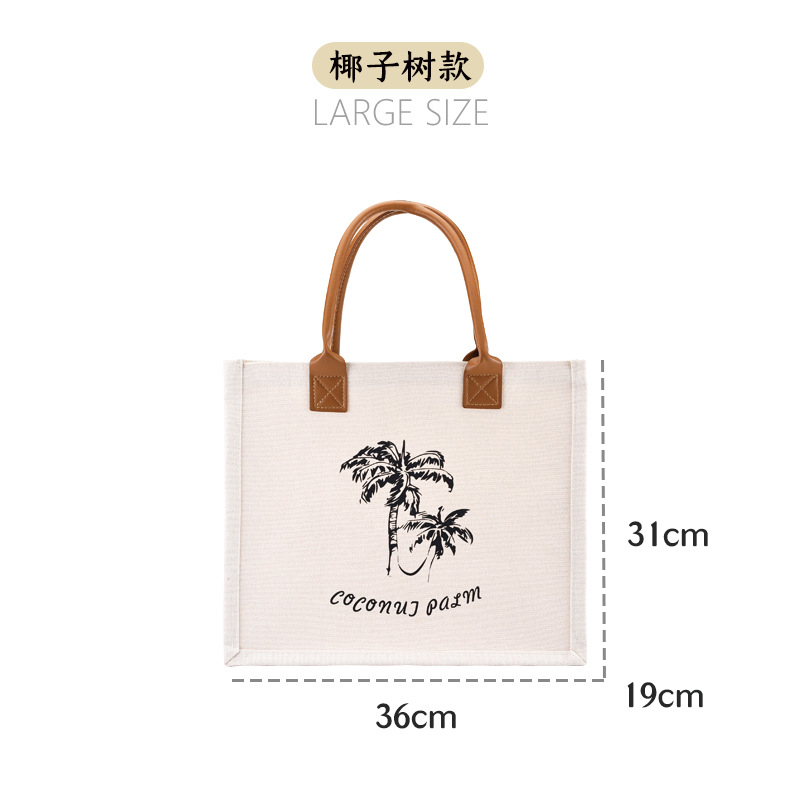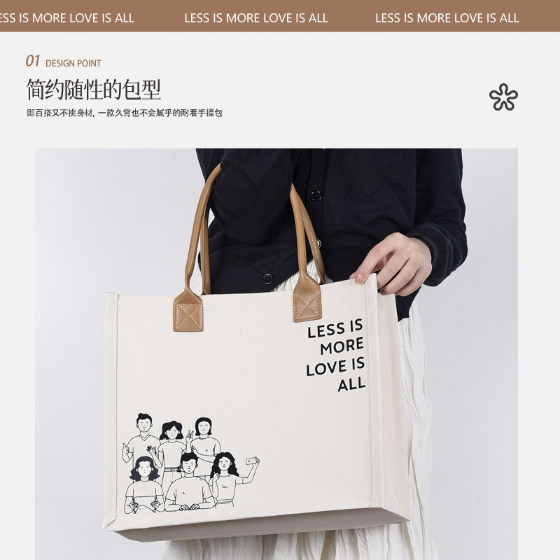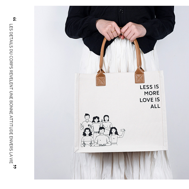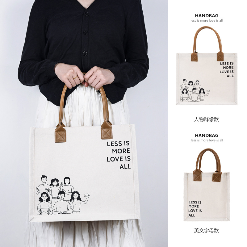 手提帆布包大容量PU皮质手提手提购物袋人物印刷通勤托特帆布袋