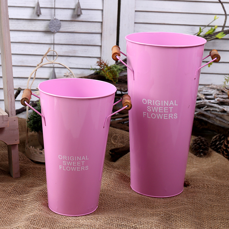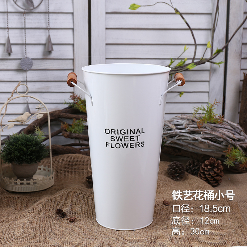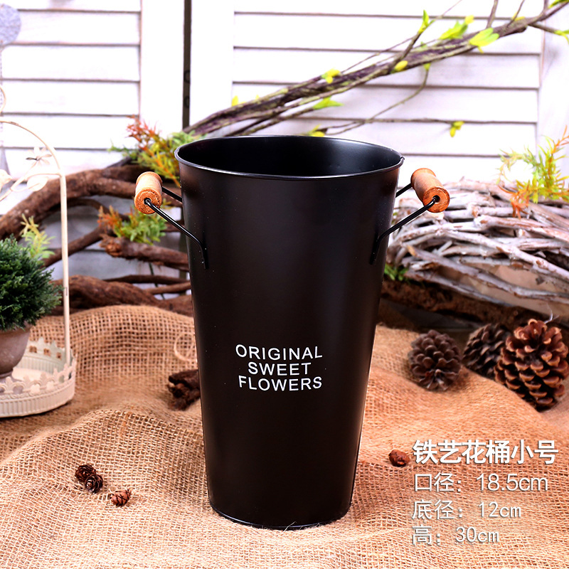 室内花店装饰花器 复古铁皮防水鲜花花桶 鲜花铁皮桶抱抱桶