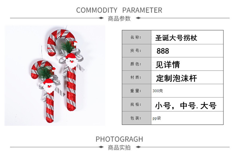 圣诞节装饰圣诞树挂件红白拐杖彩绘拐杖舞蹈影楼喜庆道具节日用品
