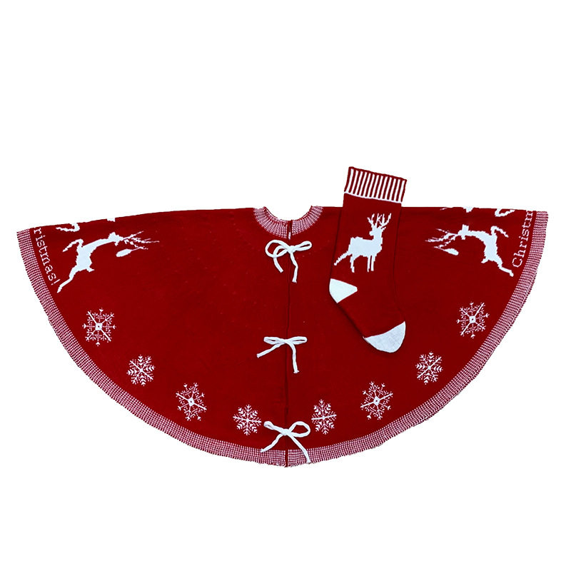 麋鹿红色圣诞树裙新款圣诞树垫针织圣诞节儿童披肩圣诞节装饰用品