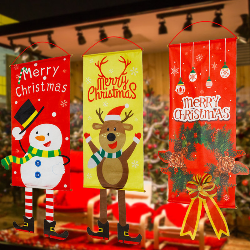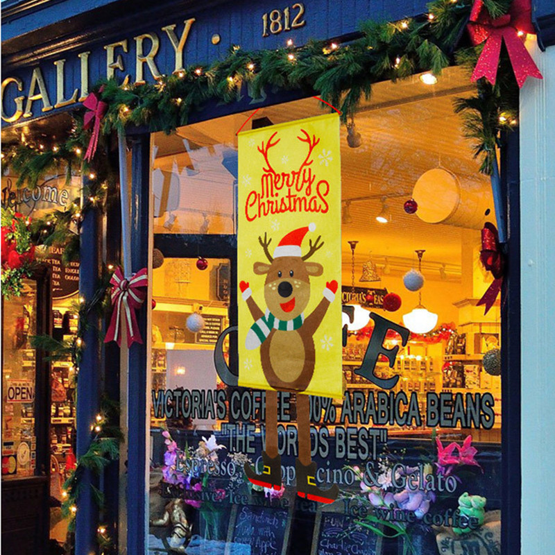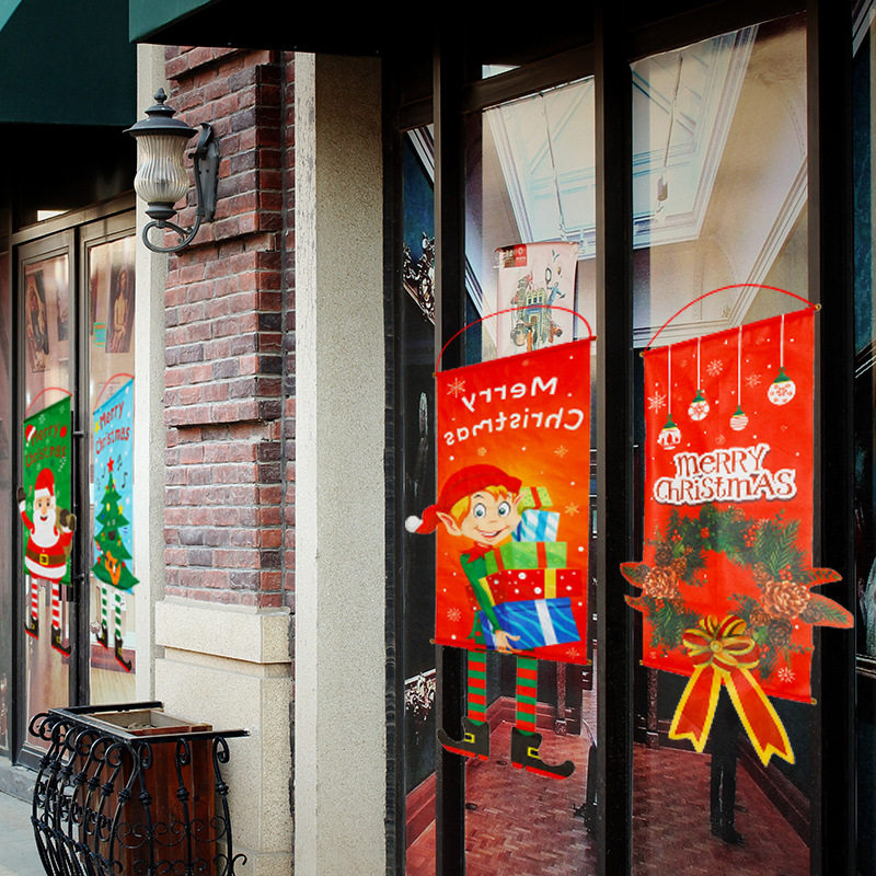 圣诞节装饰品ins圣诞树麋鹿老人餐厅墙面装饰商场橱窗玻璃门挂旗