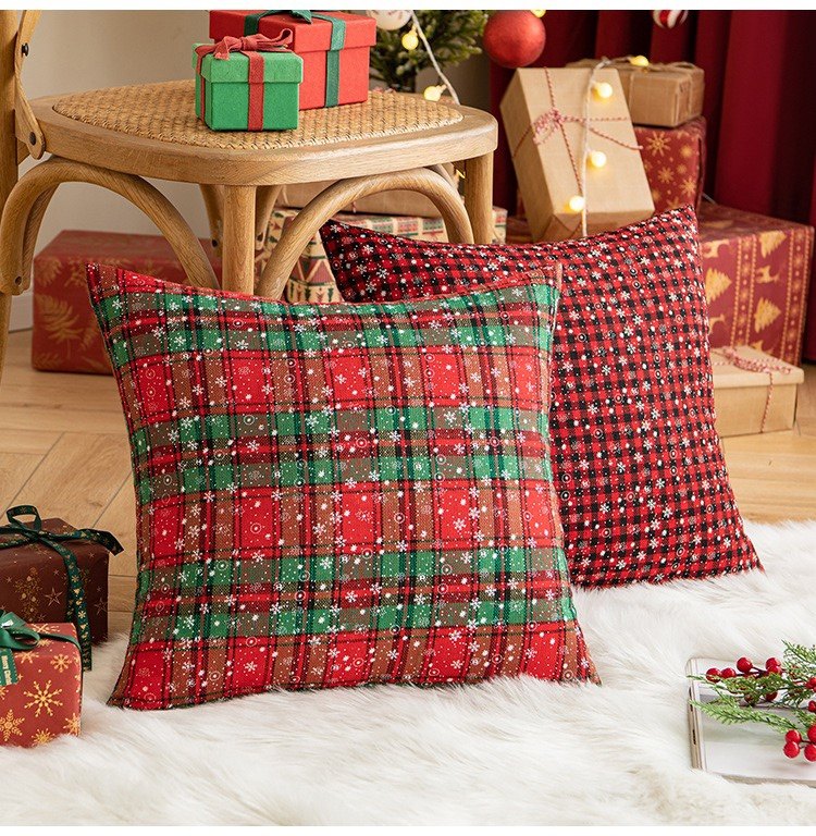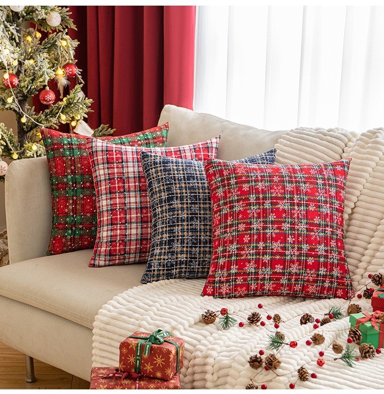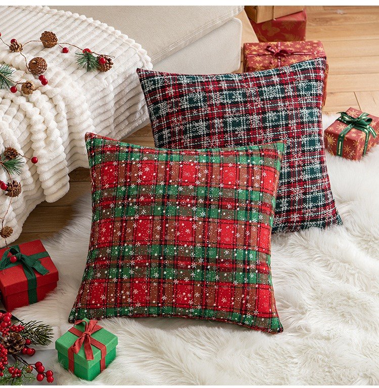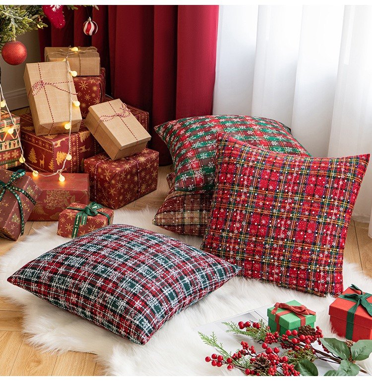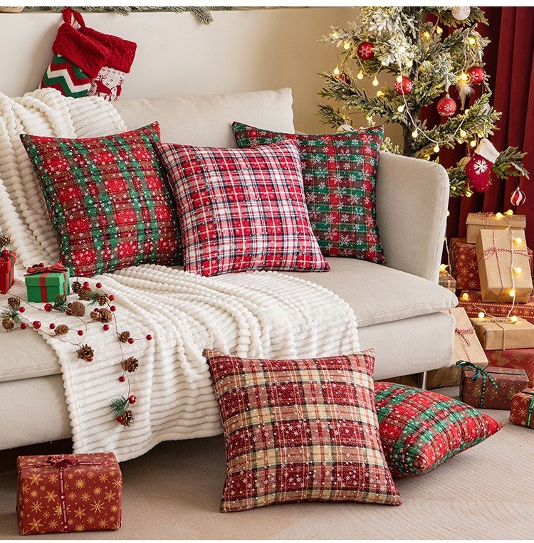 圣诞节格子抱枕红色喜庆枕套雪花抱枕套生日派对装饰复古条纹靠垫