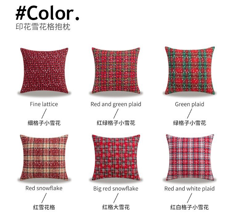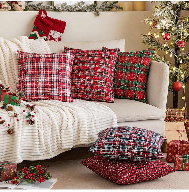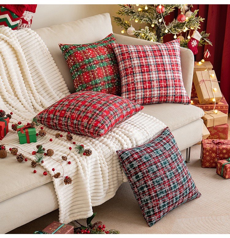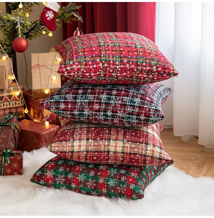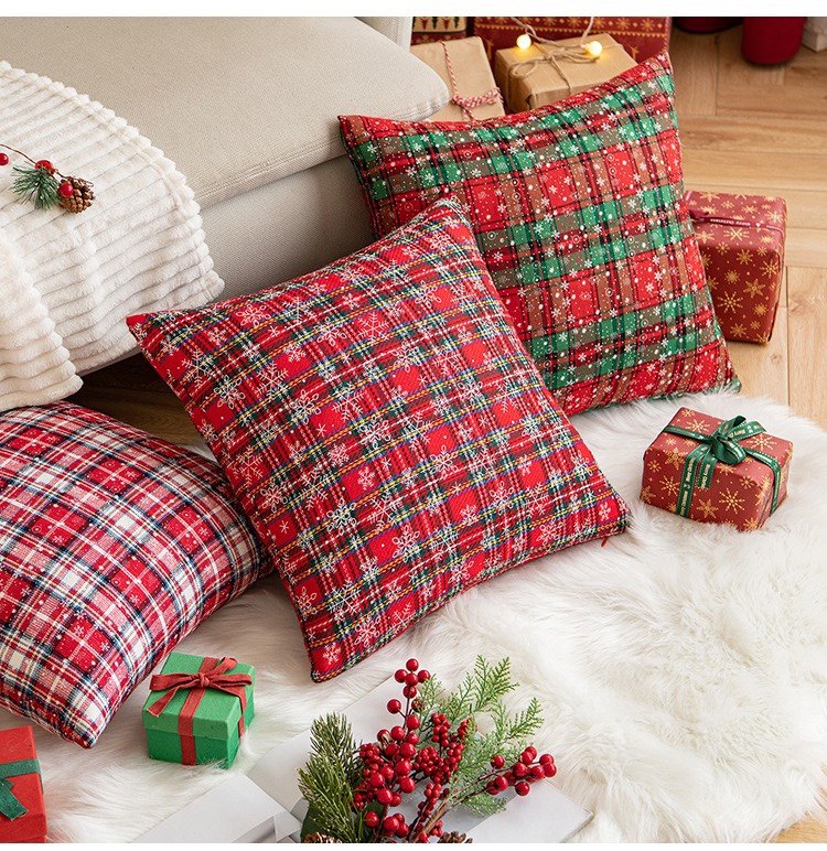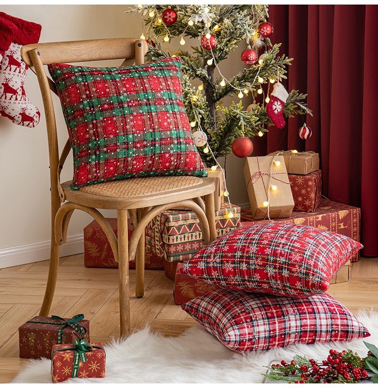 圣诞节格子抱枕红色喜庆枕套雪花抱枕套生日派对装饰复古条纹靠垫