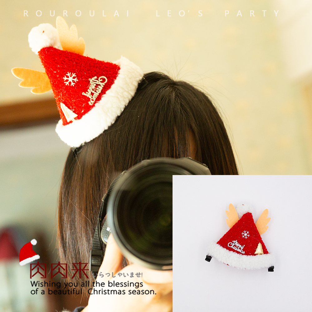 圣诞节发夹派对装扮头饰发饰鹿角圣诞帽儿童成人幼儿园女孩男孩