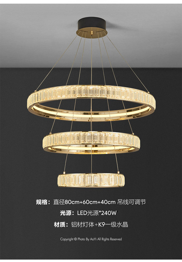 外贸专供简约客厅吊灯2023轻奢水晶灯高级感圆形中山灯具