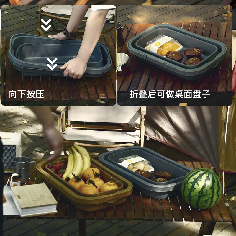 便携式收纳篮野外露营装水手提篮可折叠多功能野餐篮子户外折叠箱