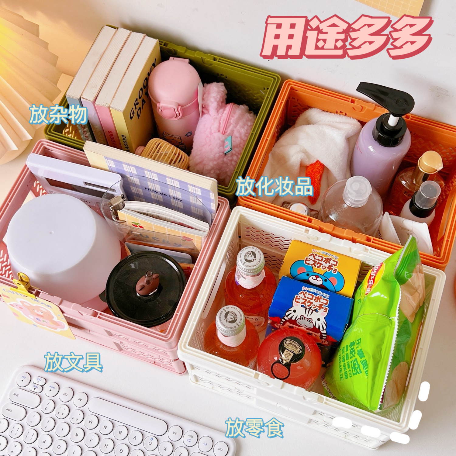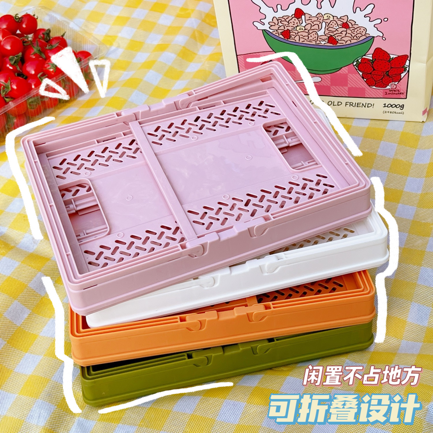 户外野餐篮ins堆叠可折叠收纳筐春游日式菜篮子便携手提篮脏衣篮