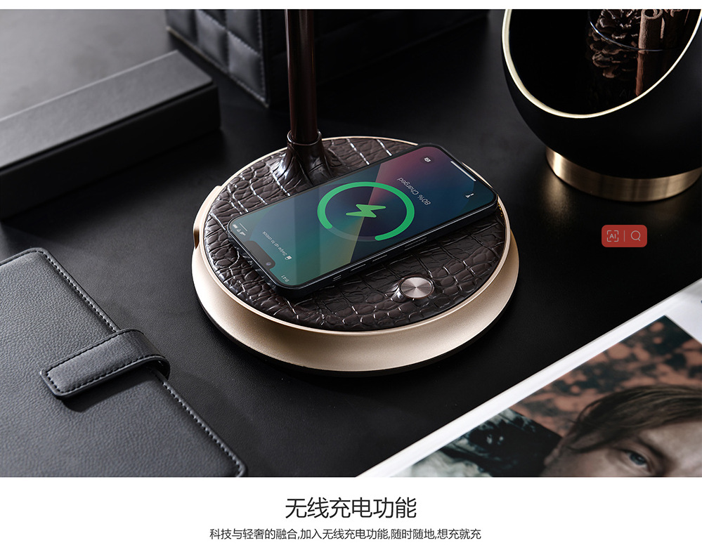 外贸专供2023全新设计创意优雅夜灯鳄鱼皮无线充LED台灯