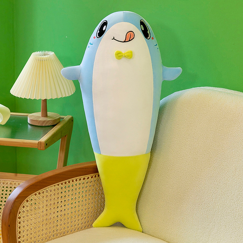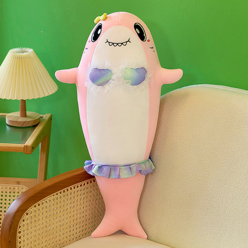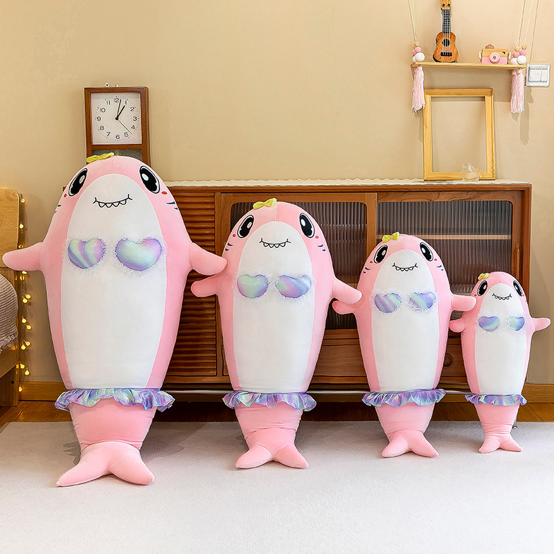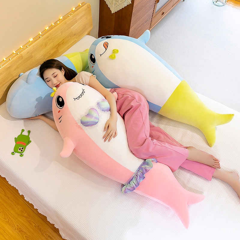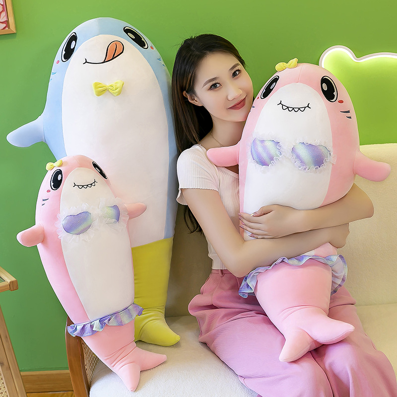 跨境可爱情侣鲨鱼睡觉抱枕长条毛绒玩具靠垫沙发床上玩偶布娃娃批