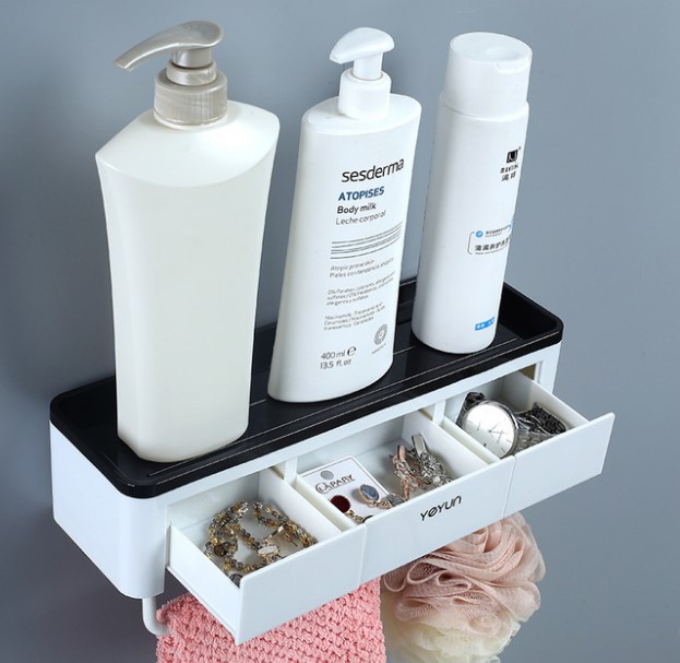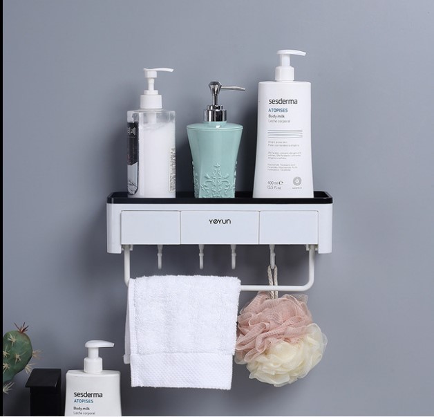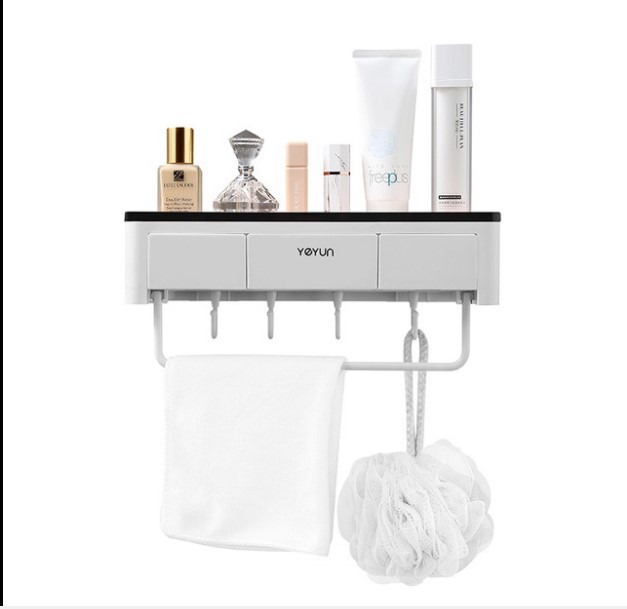 自主设计 浴室多功能置物架 墙上免打孔塑料收纳架 壁挂牙刷架