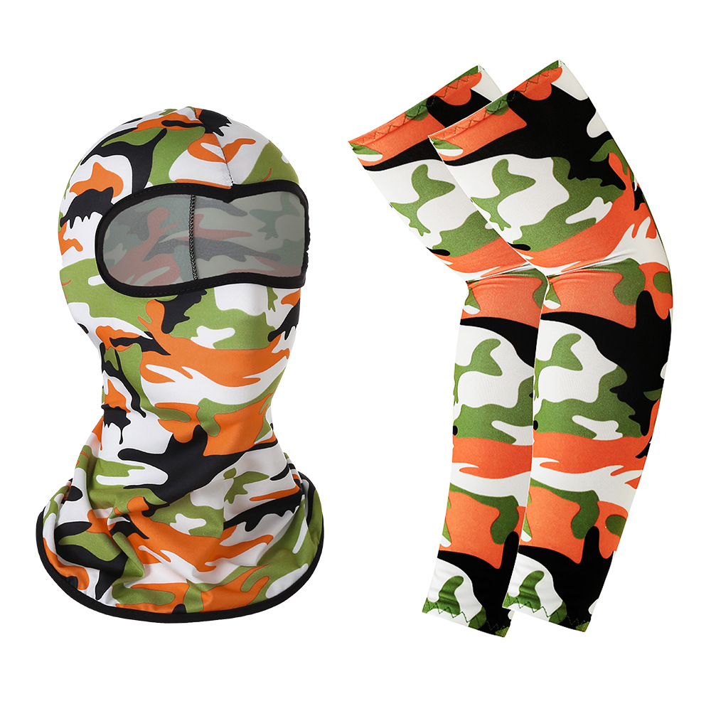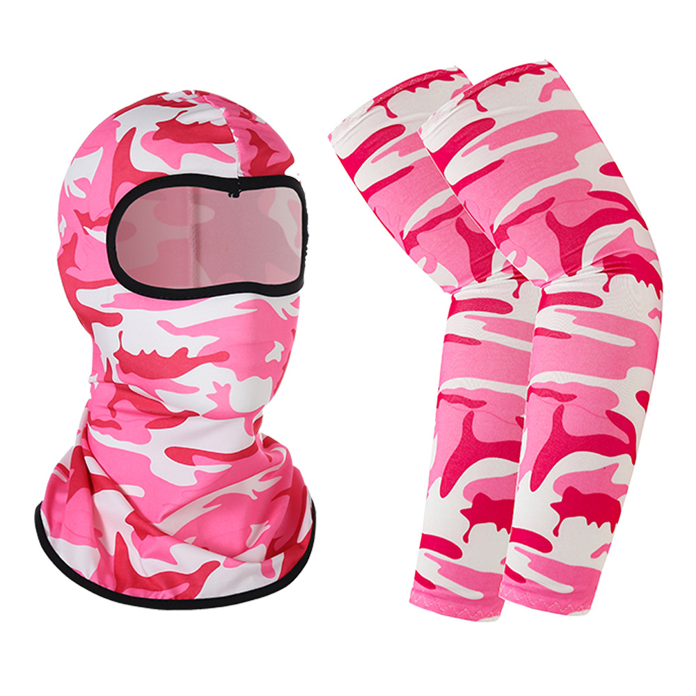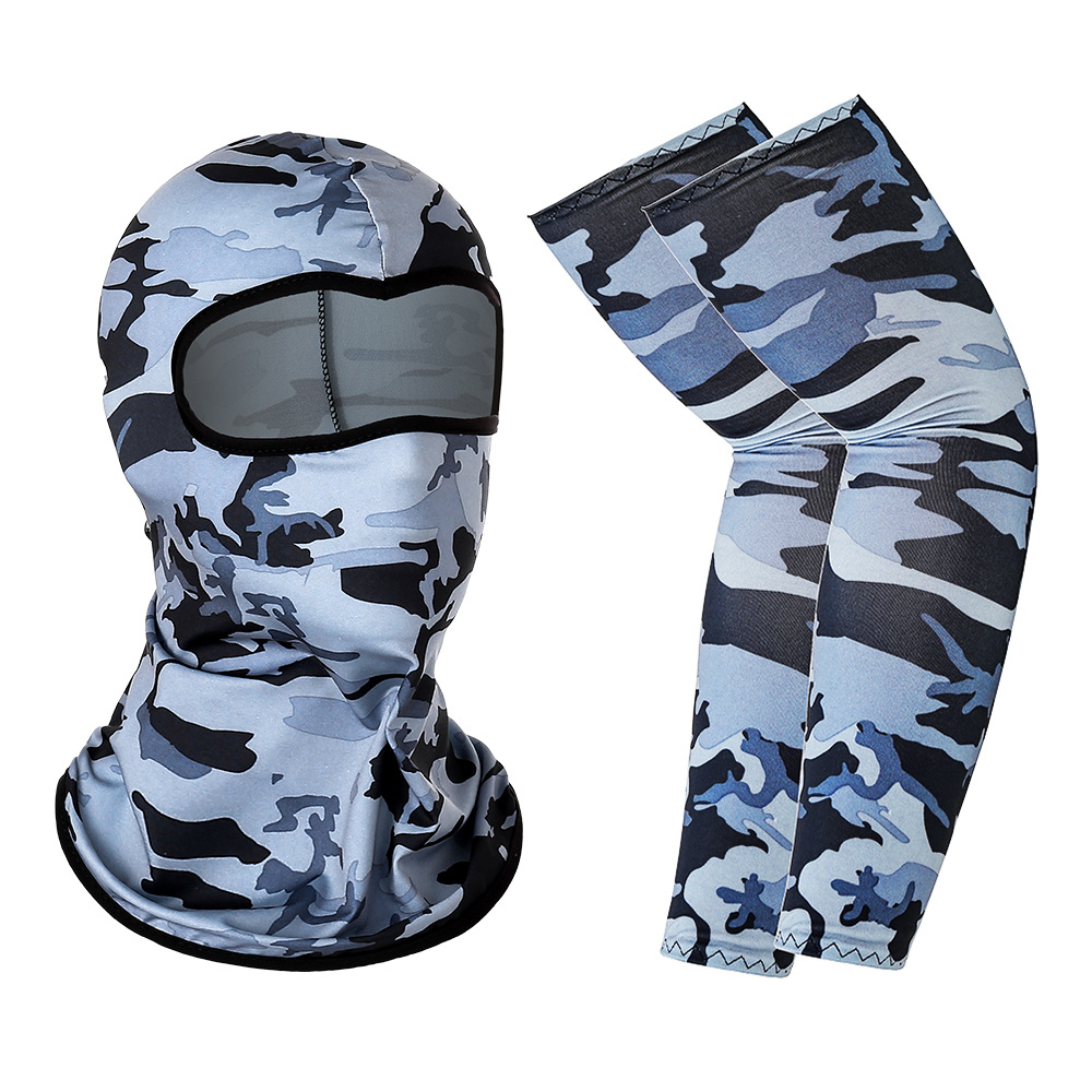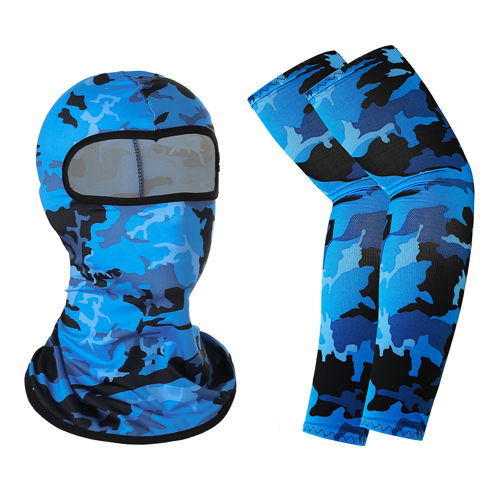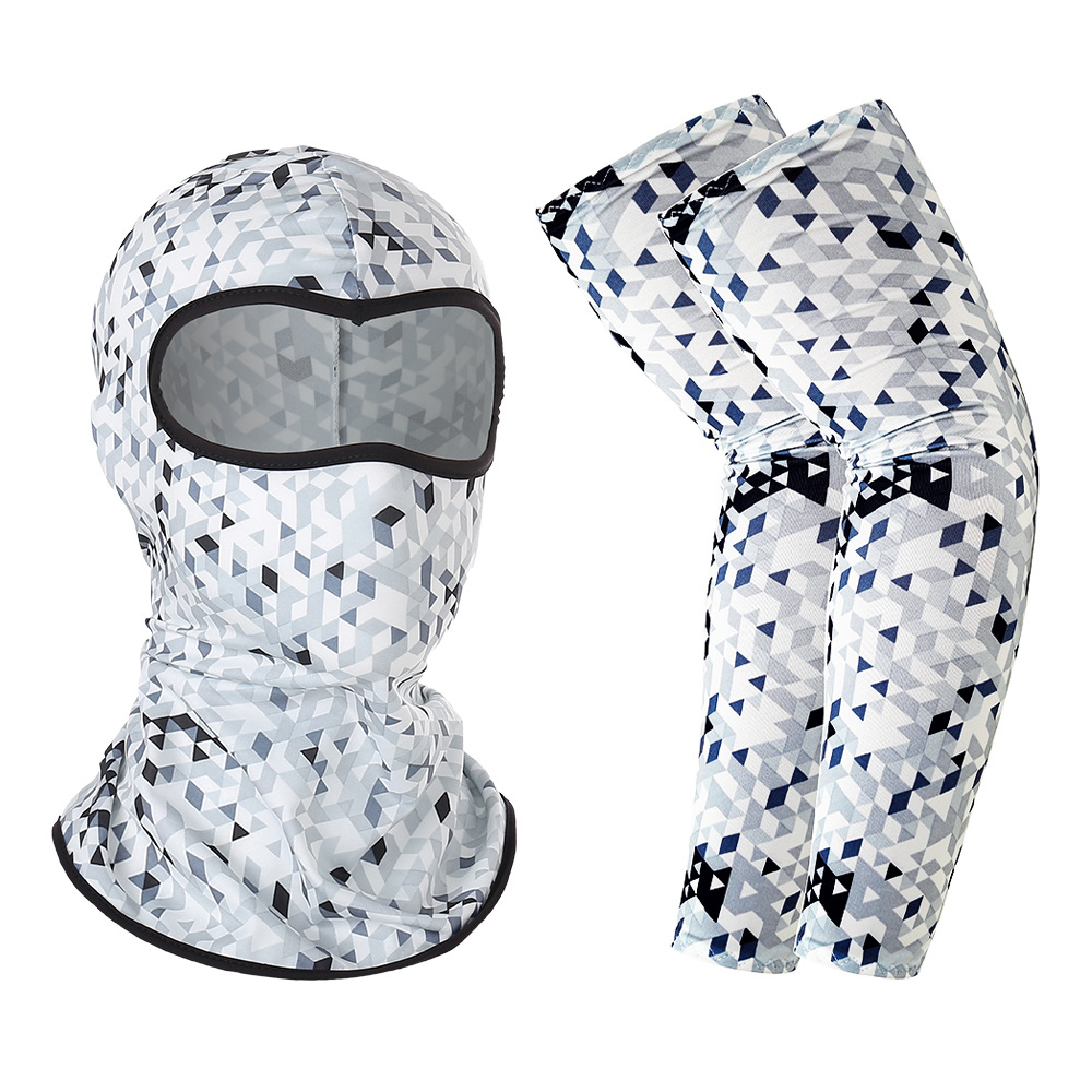 夏季户外防晒骑行面罩冰丝袖套套装透气吸湿排汗防护头套套袖组合